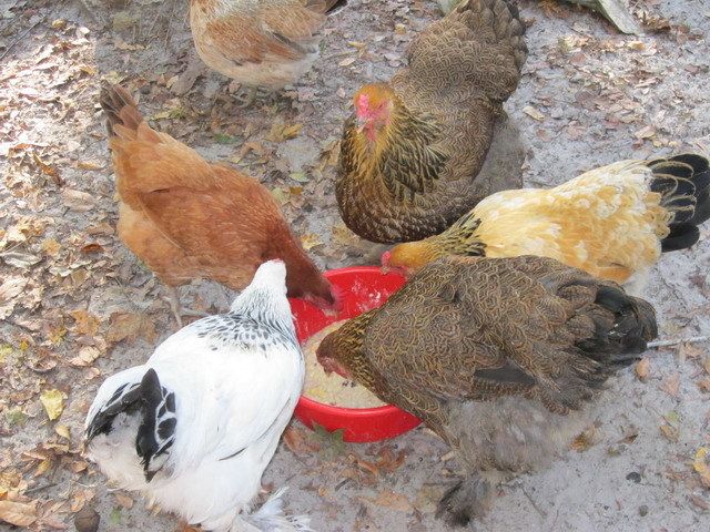 Today was the typical cold weather treat - warm oatmeal/chicken crumble mixture, along with corn and raisins. We put 12 bowls down and within 15 minutes picked up 12 empties!