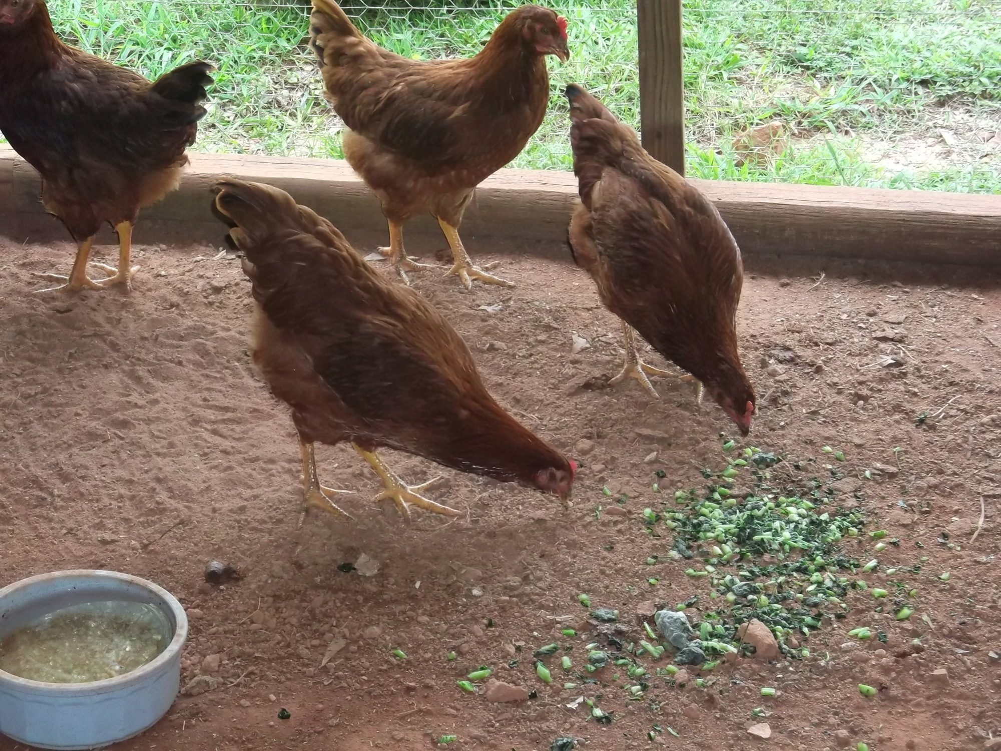 My girls got persimmons, cherry tomatoes, and sunflower seeds. Their tractor coop is under the persimmon tree, which is dropping fruit constantly through the day.