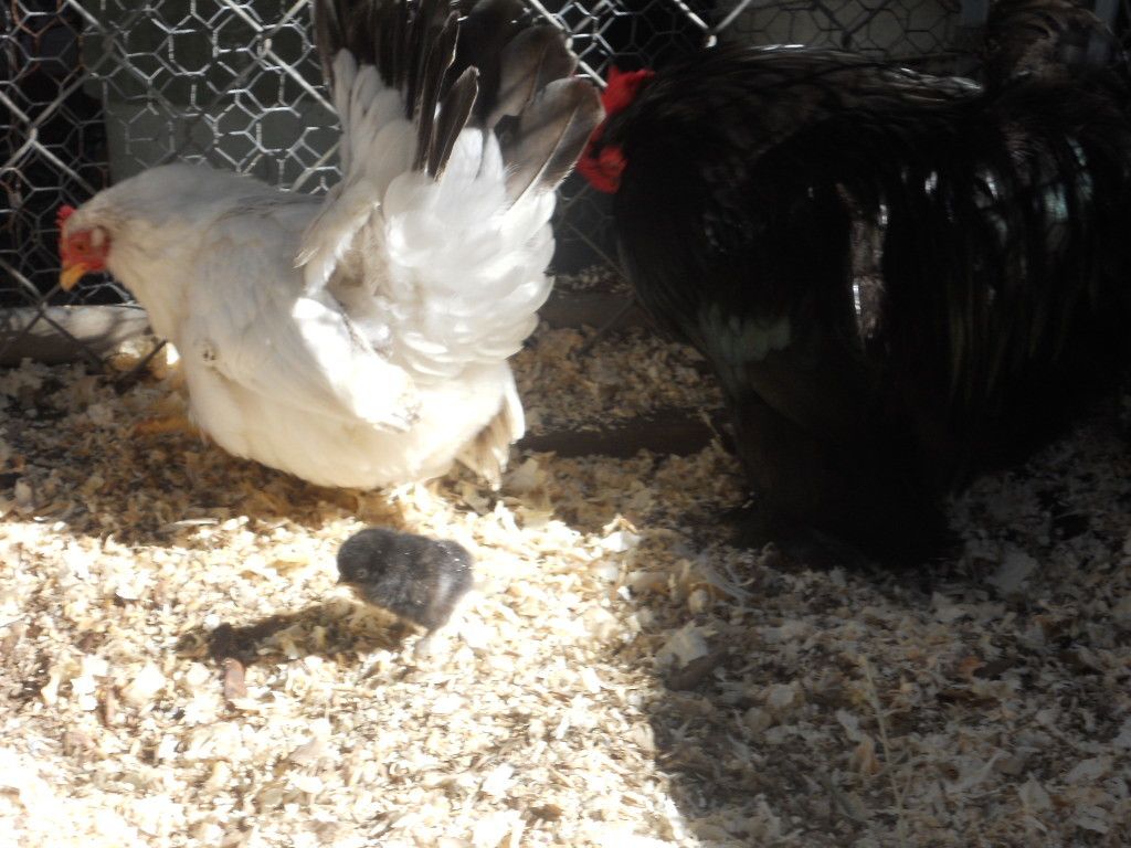 My birds all free range, standards, bantams, everyone together. My only roosters are bantam cochins and OEGB's. I've got eggs hatching under a broody tonight, all bantam cochin eggs. I am hoping that some of the chicks will be pure cochins. The first chick out, however, is obviously not pure cochin, and must be an OEGB/cochin mix. Anyone have pictures of adult birds of this particular cross? It's a funny-looking baby tonight... I'll have pictures after it fluffs up and the broody is finished hatching her clutch.