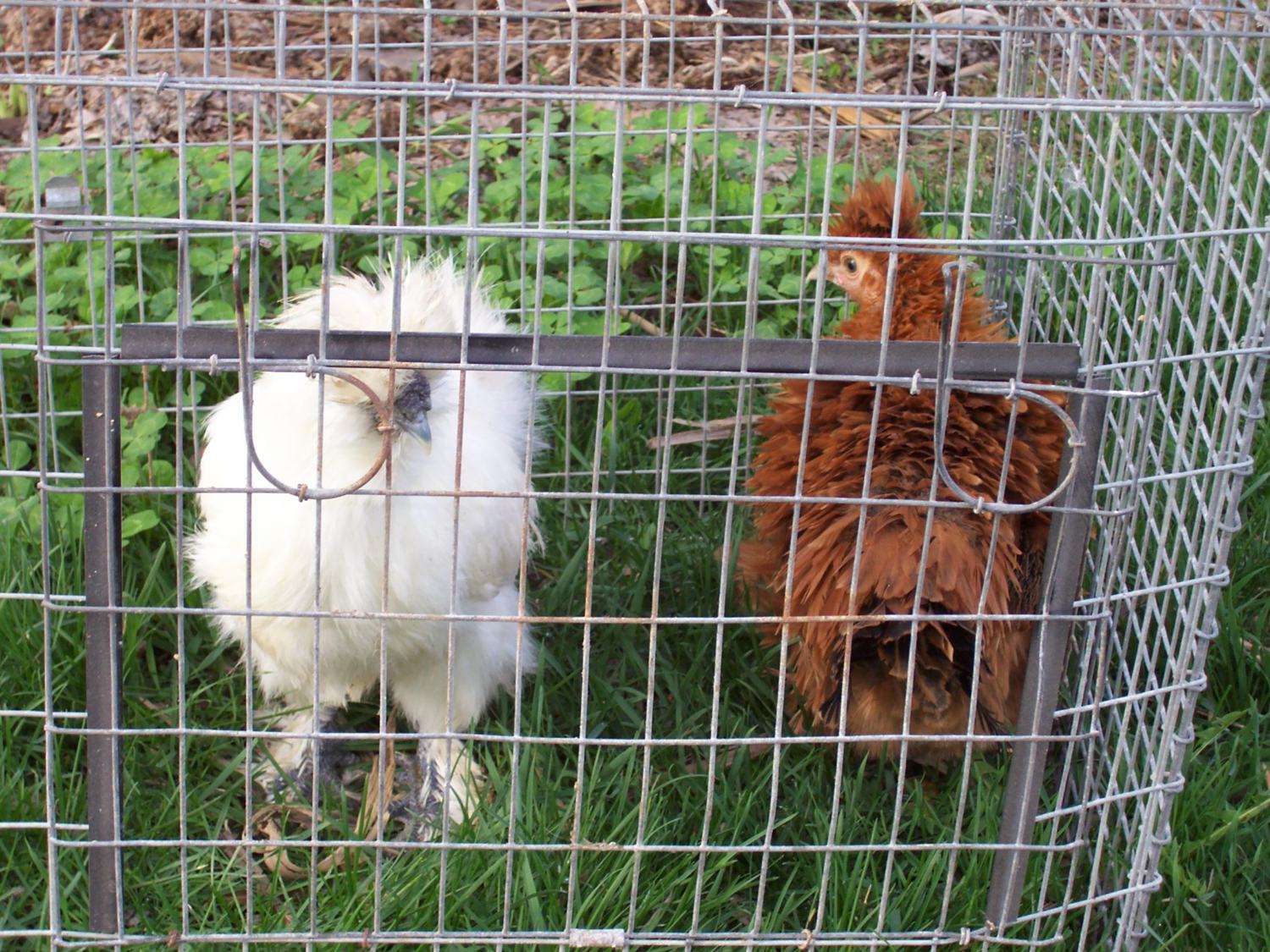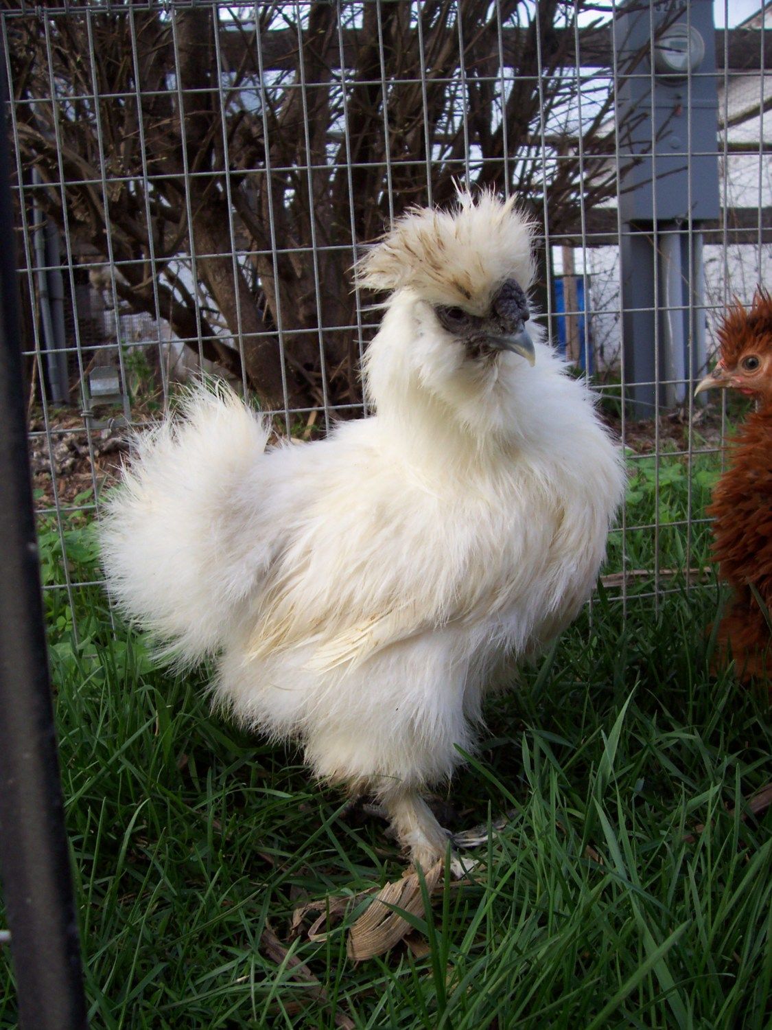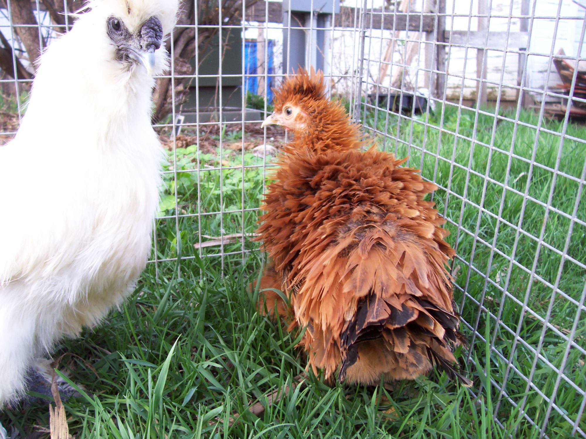 I just thought I'd show a Silkie and a Sizzle that I got from eggs hatched from Marie's eggs last Fall. I'm guessing I have a Silkie Cockerel and a Sizzle ??? (pullet?)