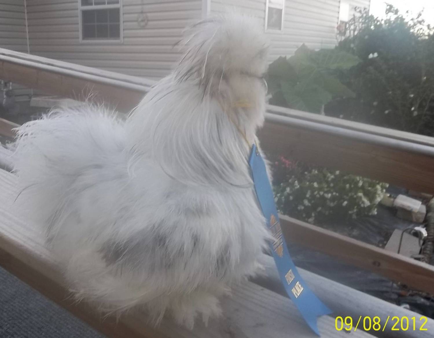 They judged them by color and my roo got first place in that color variety. All the silkies I brought got first except one and she got second. She had an extra toe is why. I thought she would get disqualified but she didn't. He is an apa certified judge. Paint isn't a standard color...........yet. He actually won twice, first place in both shows. The first show wasn't judged by a certified judge but the second one was.I thought paint was not an acceptable variety in silkies according to APA? Has the standard changed?
