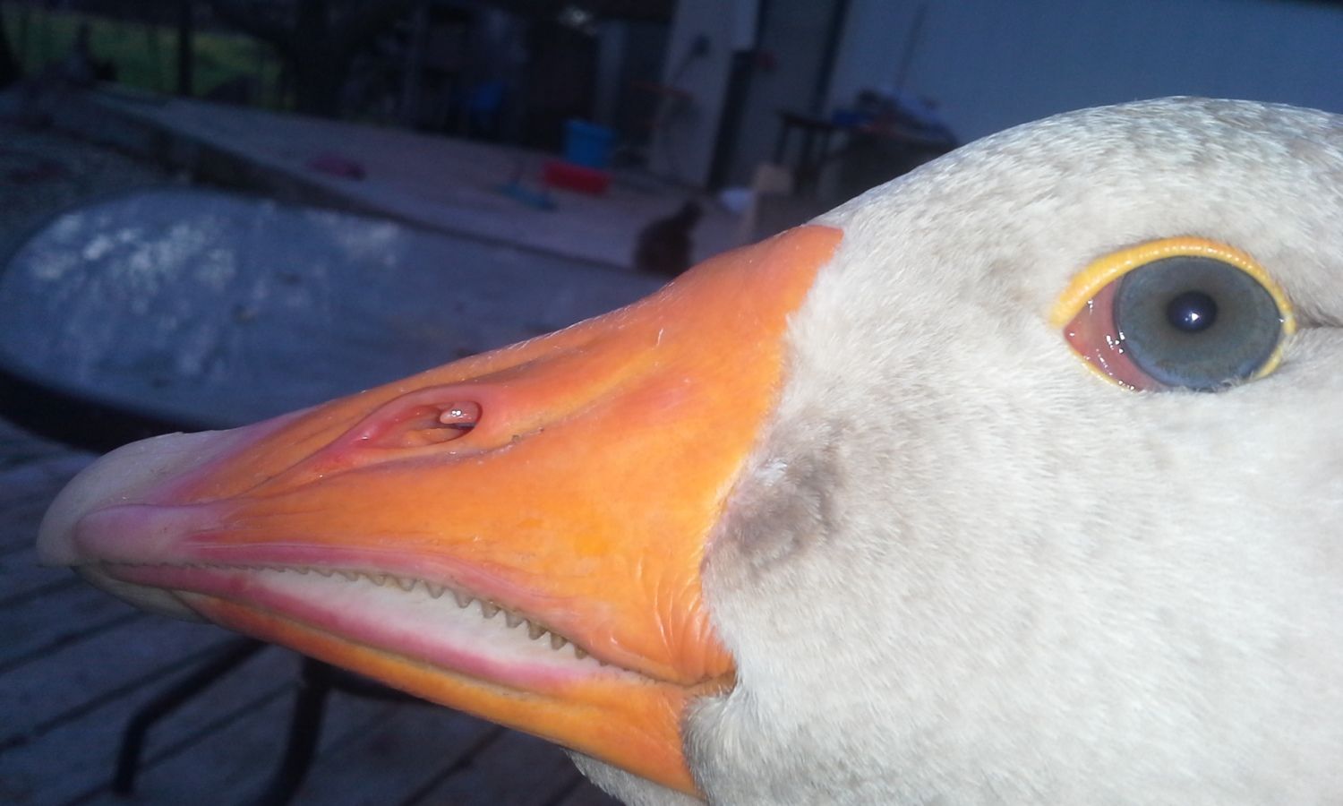 About a week and a half ago, I was holding my Amer. Buff gander, Gus, on my lap when I happened to notice this patch of what looked to be 'wet'