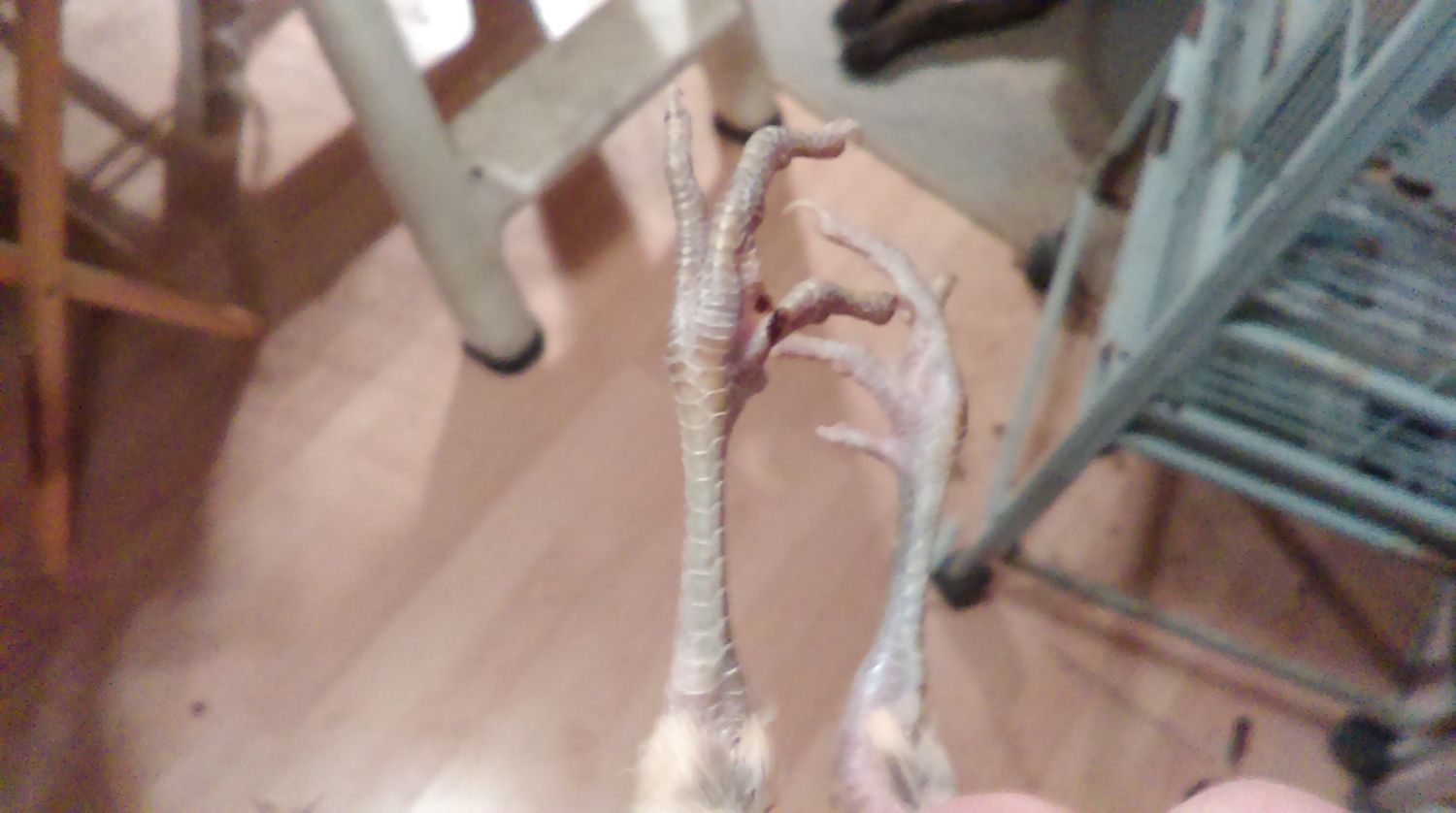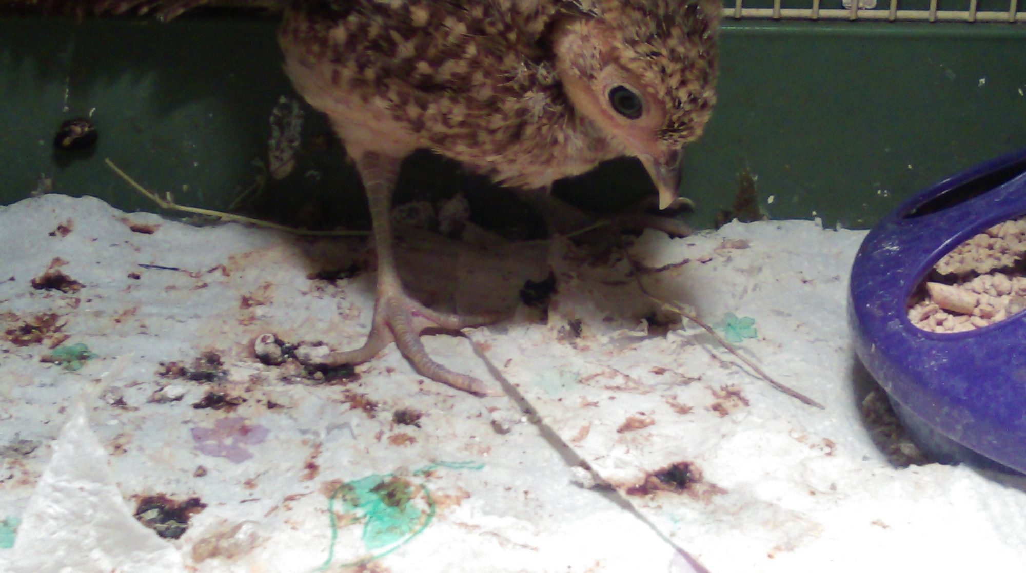What on earth is going on with his feet? He's a five week old Red Golden Pheasant, and as you can see, his feet are pretty gnarly. There's one toe where the toenail is even completely upside down! He's able to stand properly, but can't walk right to save his life. He's constantly stumbling and falling around. I had four other pheasant hatch this season, and they too seemed to have messed up feet and had difficulties walking. I lost those chicks though due to both an unexpected lice infestation and due to them getting their feet caught in the spacing of the wire floor(hence why this guy has a solid floor) weeks ago. I thought he would grow out of it, but he hasn't and his feet are only getting more and more noticeably messed up. I also noticed that, for the first few days, all the pheasant chicks were noticeably weaker than my chicken chicks. If they fell onto their back, they would simply stay that way for a few minutes, before getting back on their feet! Last year, I lost all but two pheasant chicks because the others were unable to hatch due to their parents not getting enough protein. Those two chicks also ended up dying thanks to my stupid dog, but their feet were normal and they weren't weak. This year, I gave my pheasant pair a special pheasant blend with 30% protein in it, as well as free fed them wild bird seeds with sunflower seeds in it. I didn't free fed them the special blend since my doves were gobbling it up too, and I was unsure if the extra protein would hurt them, but they got the blend every other day. I also gave them grass/weeds whenever I thought about it. As a result, any eggs that were fertile hatched successfully, but they all had this foot deformity. Meanwhile, the protein-deficient chicks from last year didn't? The chicks this year also all got only the special 30% protein blend. Is a nutrition issue, or something that glitched while in the egg, or something else? Help on what's going on and if I can help this little guy is appreciated! But please, if this is a nutrition deficiency, tell me how to fix it and not just say it's a nutrition problem. I have no idea where to start if this is a nutrition issue with the parents or chicks!