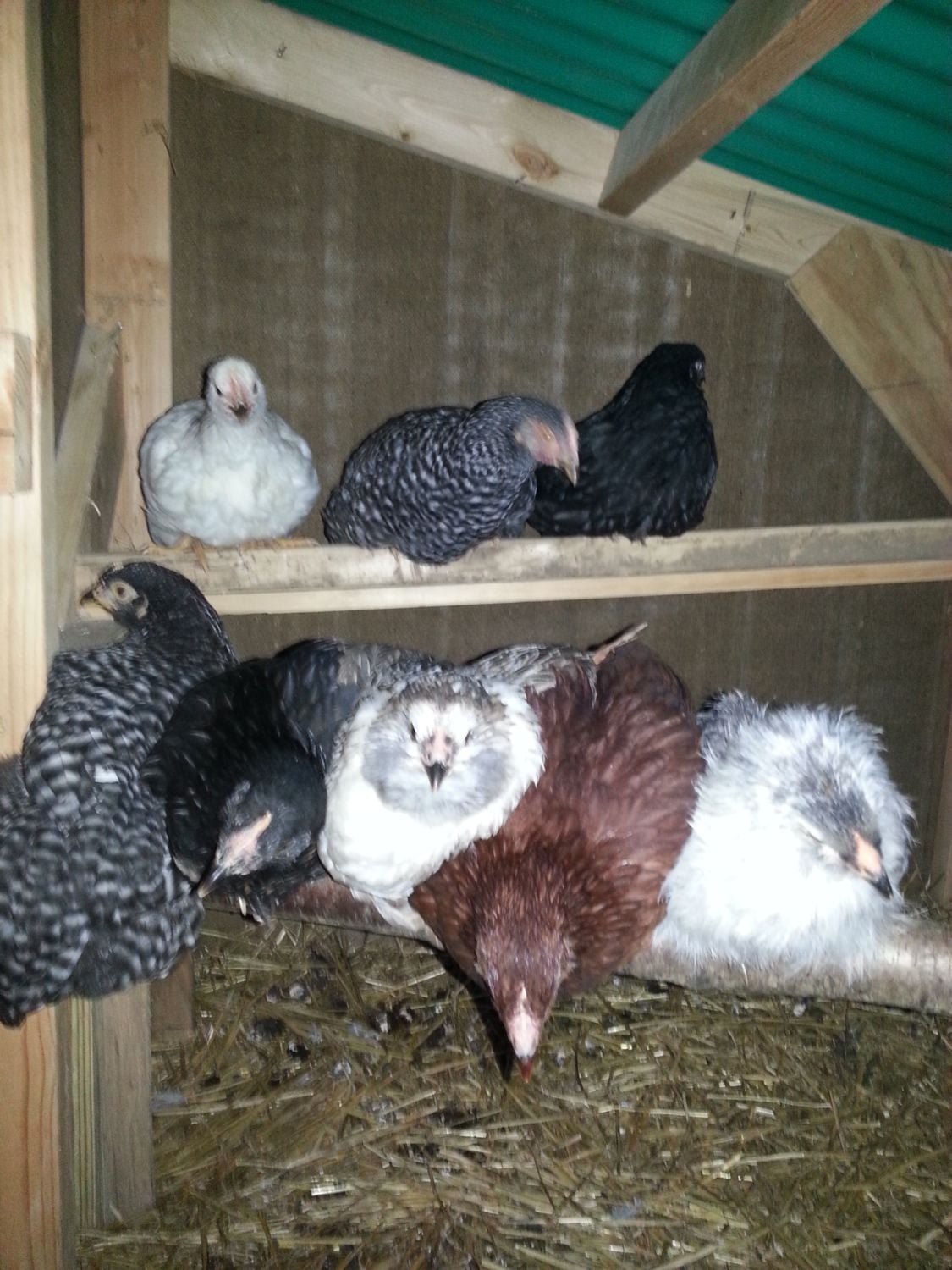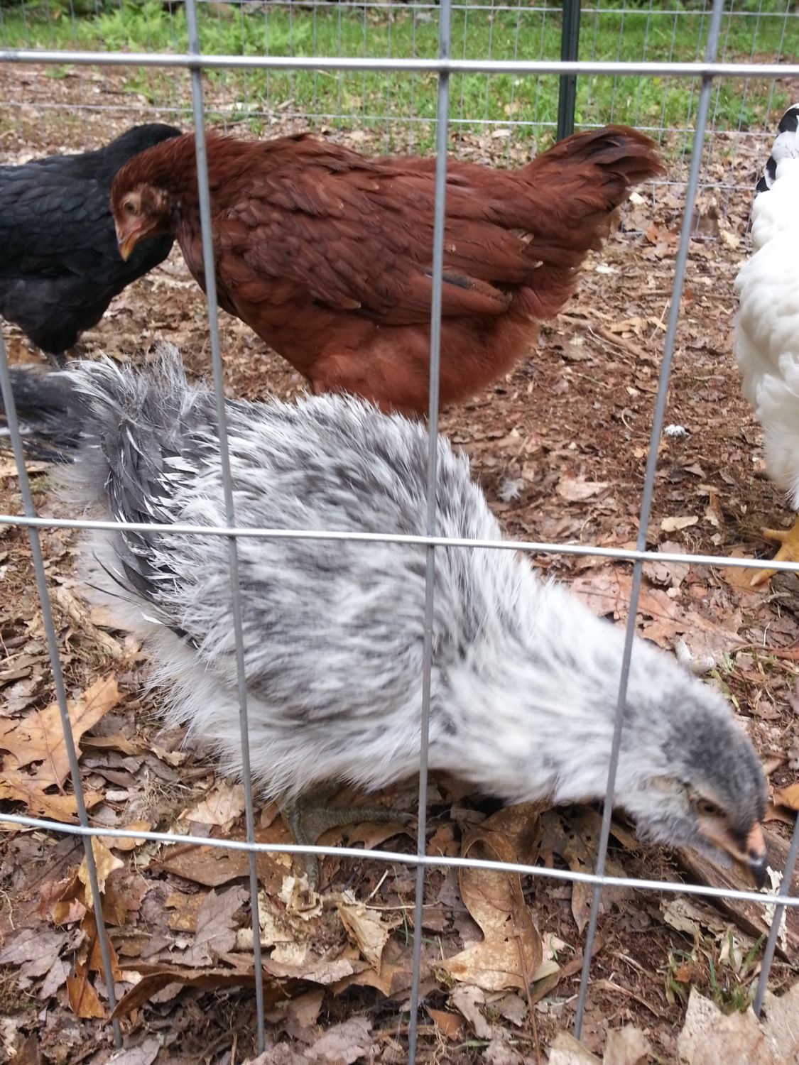 I'm so glad I found this thread. I have a pullet with similar plumage and we were worried something was wrong. We're still watching "Scratch" to make sure she stays warm enough even though she has been moved out of the brooder. Her sister "Chipmunk" is pictured to show the difference.