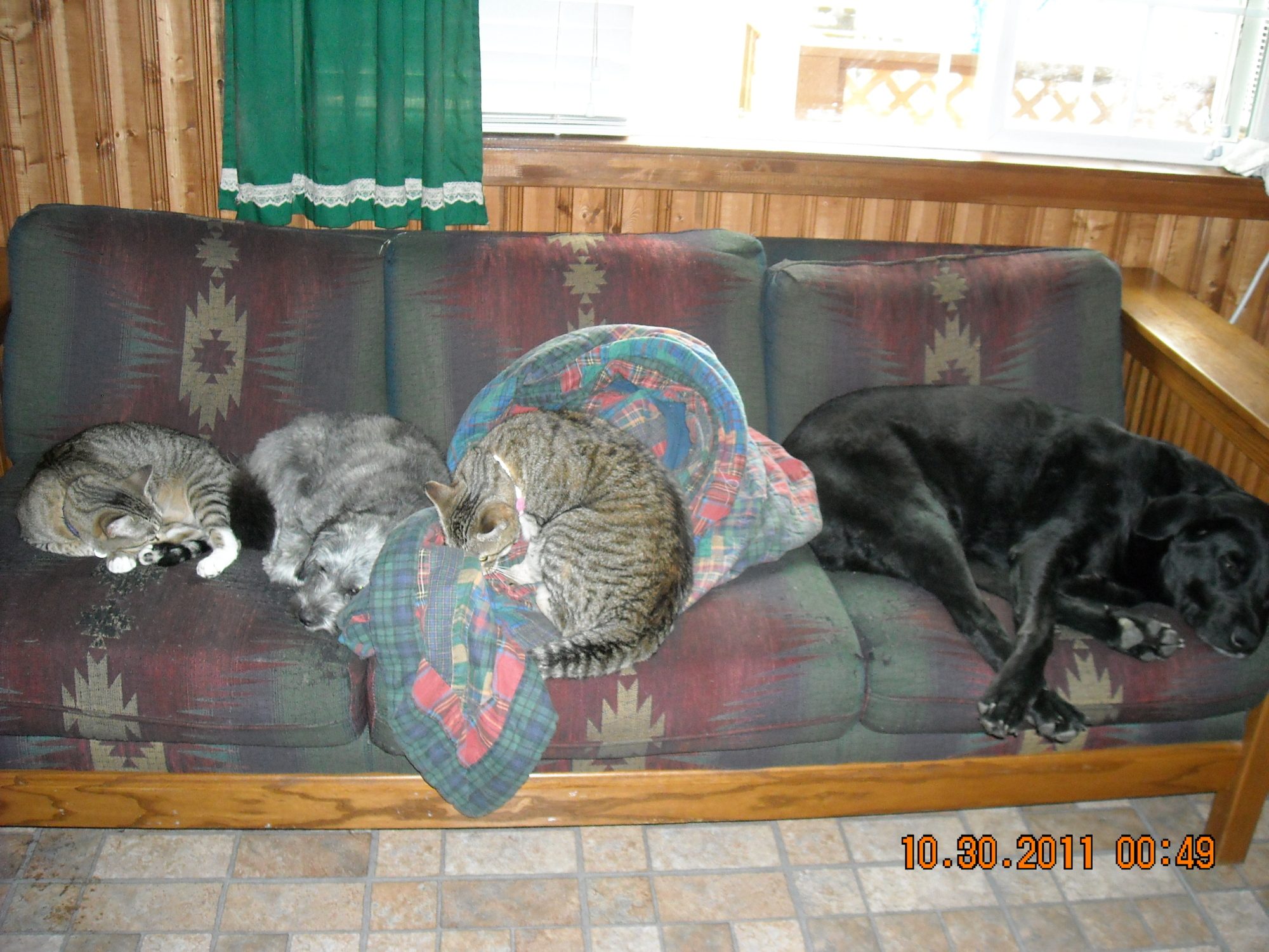 Delila - Black Lab Mix, Myrrh - Black Lab, She is supposed to be full lab but looks like a Pitt got in there somewhere when you look at her face. So we call her a Pitadore. Last and least in size, is Nina our Snorkie.
