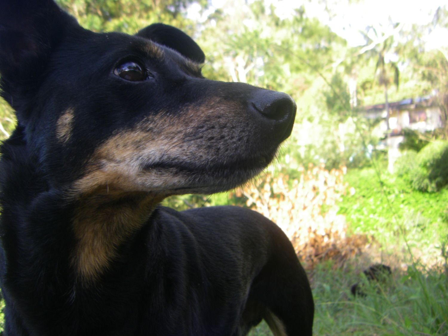 Name--Suka. Named so because after a struggle with her (she was an adopted dog with a buttload of issues) I didn't want to keep her old name. She was like a new dog, so a new name was in order. So I chose Suka because though she doesn't look it her mother was a husky, and Suka is Inuit for FAST!