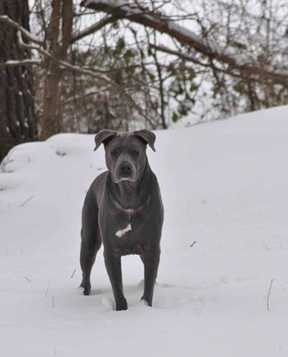 Lucky is a blue Pit bull, when she was a pup somebody attached a chain around her neck and never thought to loosen it as she grew. The chain had to be removed via surgery and she was so ill adjusted and skittish that they were going to put her down the day we rescued her, we were her last hope. That's how she got to be Lucky.