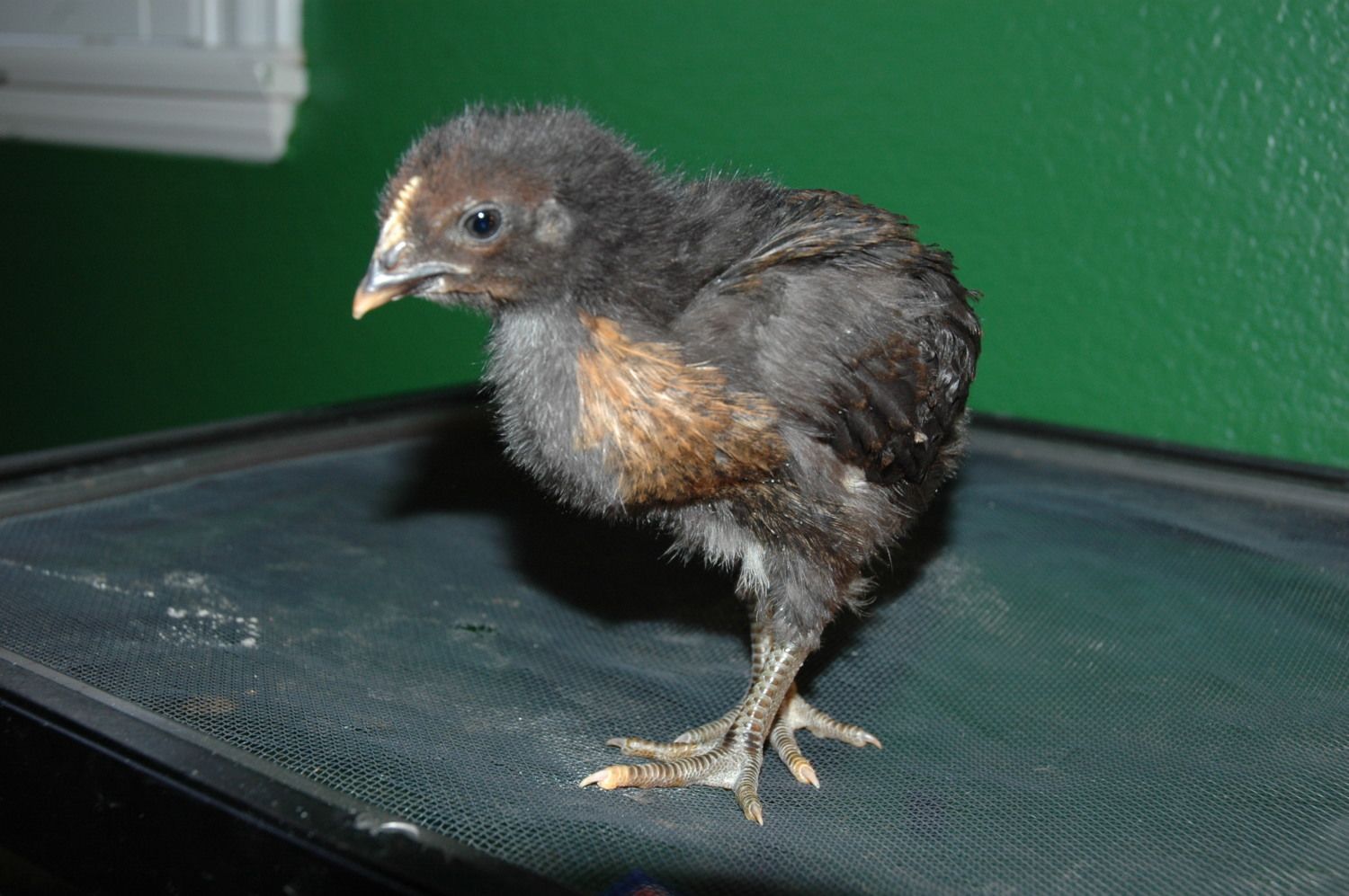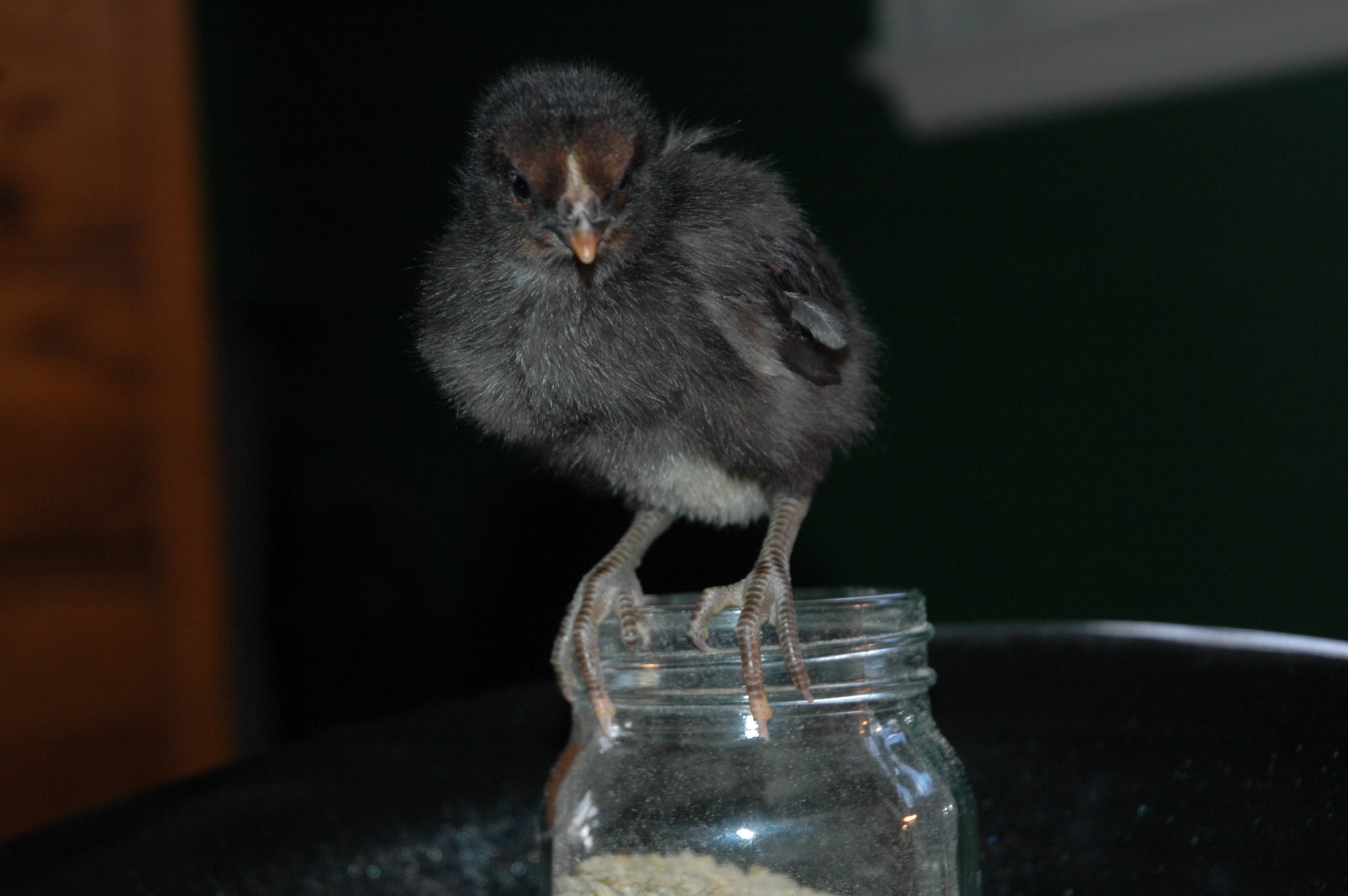 This three-week old chick was supposedly an australorp, but when the red coloring appeared on her face and then her feathers began growing in this week, we realized she is the third of nine chicks we purchased which were not what we asked for. We were able to quickly replace the speckled sussex and the feed store switched out the feather legged chick for the lakenvelder we had requested; but it's too late to get the australorp we wanted.