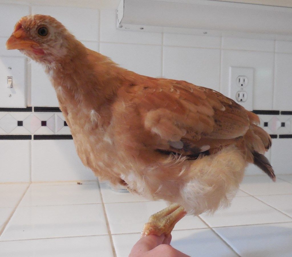Here are my 6 week old chicks. The cockerel is supposed to be a full Wheaten Marans. He looks like one to me. What do you all think? The pullet has yellowish legs, therefore I am assuming she is a mix. She hatched out of a Marans eggs but I think daddy might be an RIR. The pullet also doesn't have nicely feathered legs like her brother. I have another pullet that is similar to this one but is a darker orange. Do you think they are a mix, or is the pullet normal color for a Wheaten?
