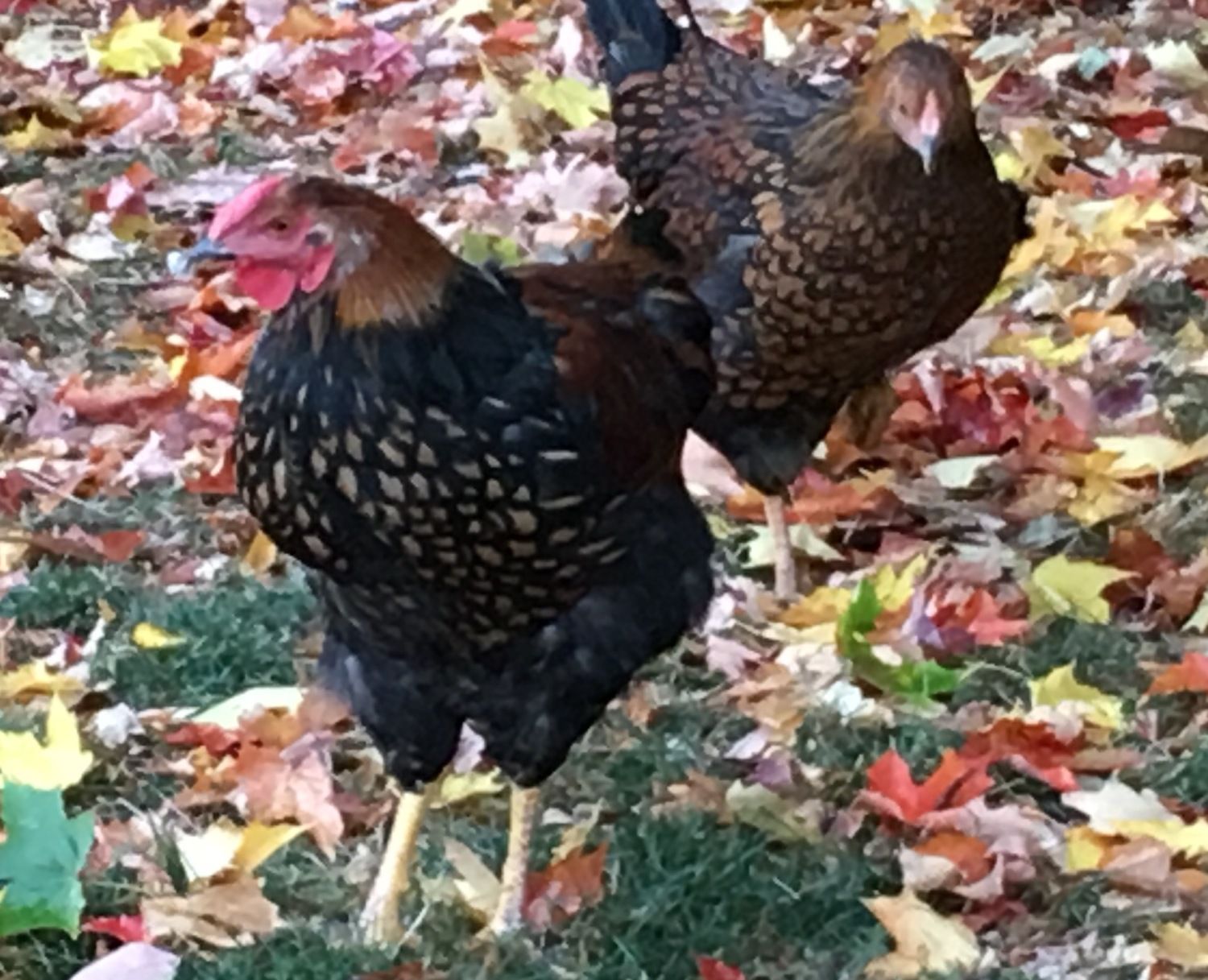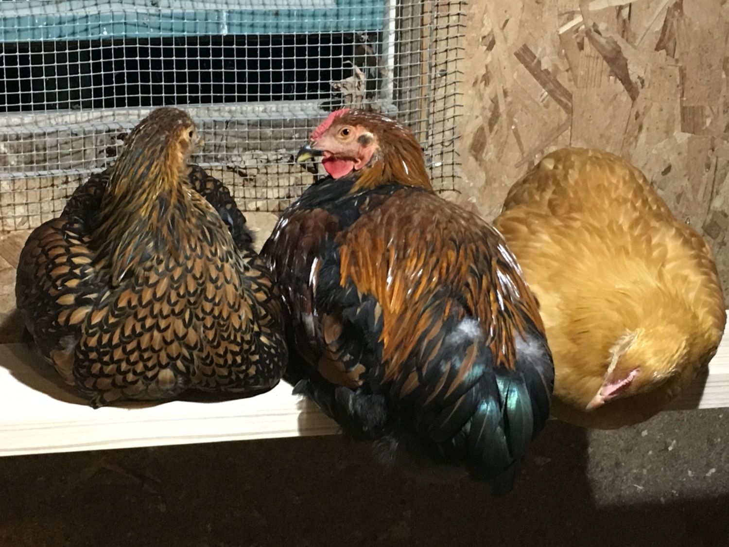 Looking at that second photo I would suggest that moulting may not be the reason for the loss of his tail feathers. That pullet next to him seems to be showing an unhealthy interest in his gorgeous iridescent rear plumage.... perhaps she is jealous!![]()