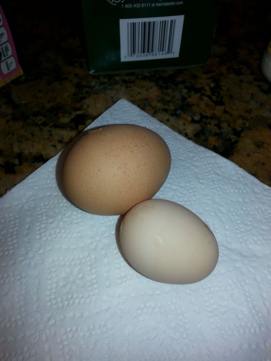 Here's an interestibg one. Yesterday morning one of the older hens hopped in the nest and I was still in the yard when she came out, so I opened the hatch to retrieve the egg and there were two-one the size of a banty egg! Never saw that before... I don't know if it's possible to get a 'double' or another hen was in there first and laid an undersized egg, or what... Only BA's in the enclosure and they've always laid roughly the same size eggs. There are a couple immature pullets in there, but they shouldn't come into lay for another couple months-they're 12 1/2 weeks old.