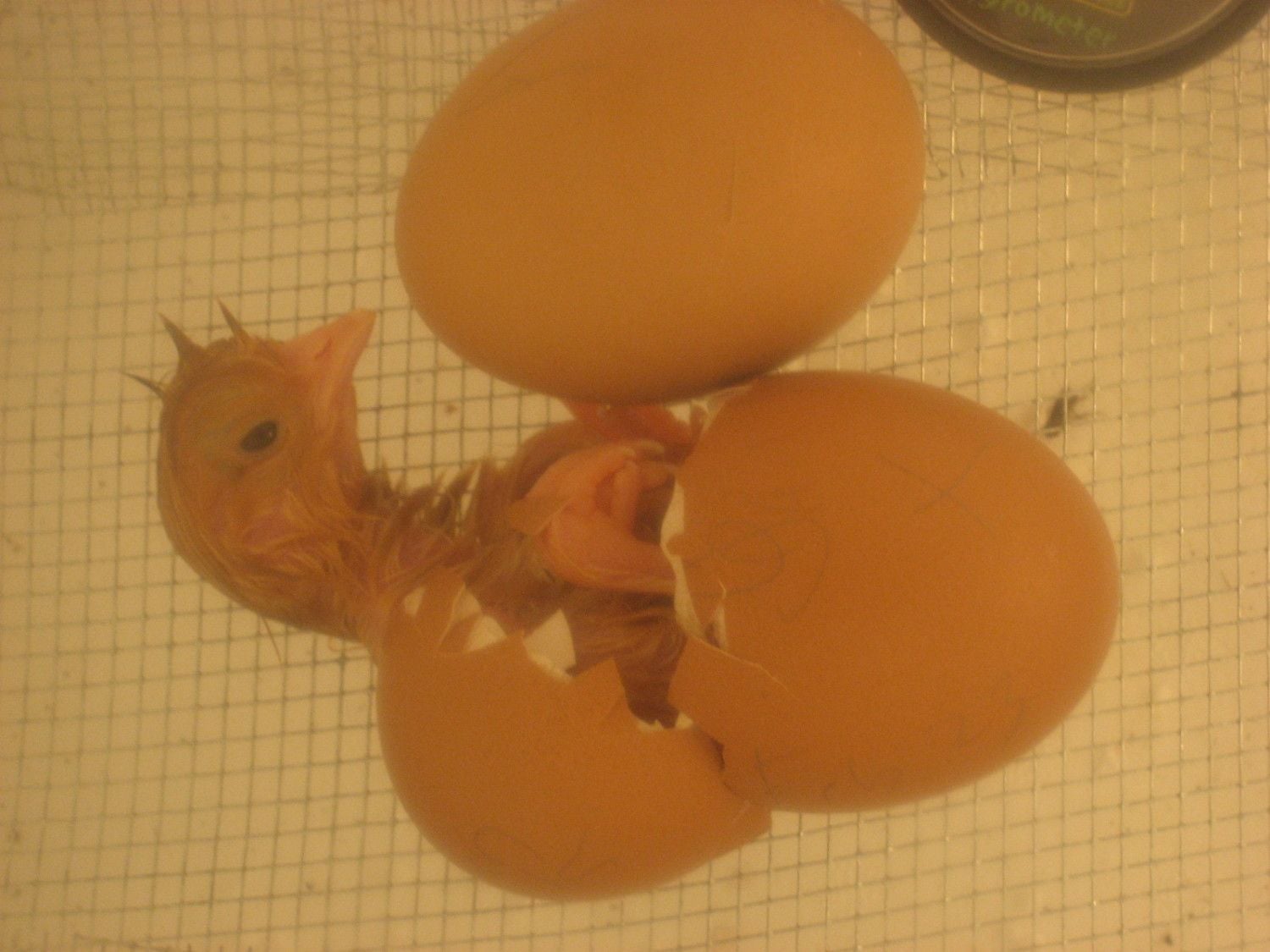aww such a cute little mohawk.I have 2 chicks hatching today as well a silkie and a d'uccle.they have the tops of but still attached.hope all your hatch good for you.
