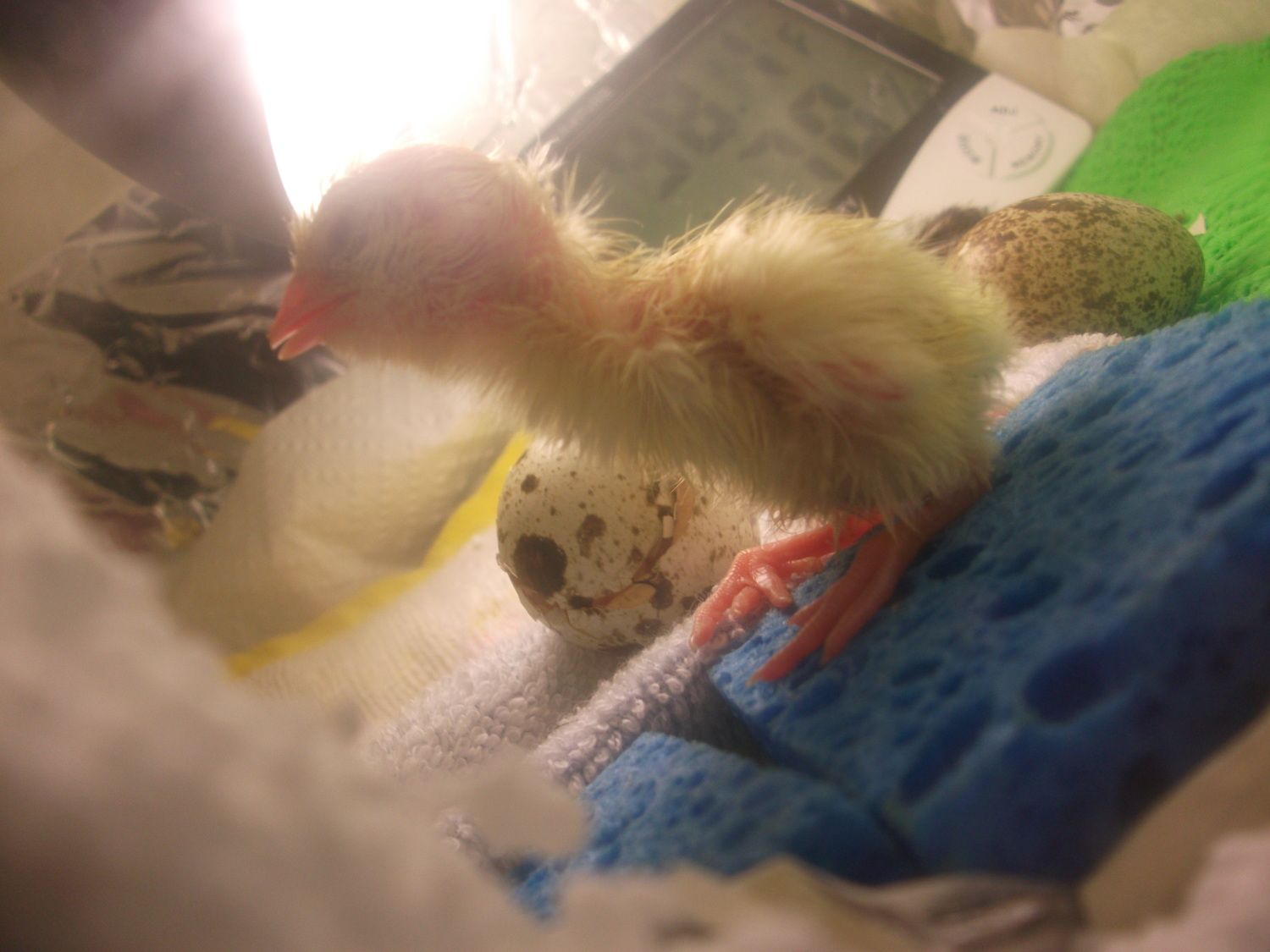 If you can see her foot it's curled, as I stated above, I've now fixed it and 'she' can walk like a normal quail again (just with a hobble brace). It was very noisy when 'she' (I don't know whether it's a girl or boy, it just looks like a little girly) first hatched.