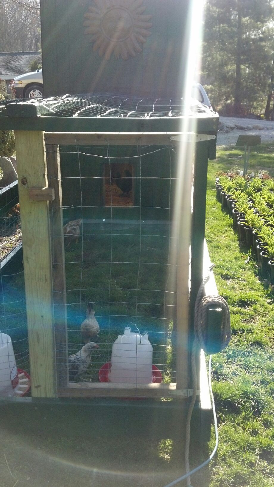 This is part of the inside of the coop they are sleeping on the hay on the floor right now I still have a heat lamp in there as the nights still get a little cold. Is it ok they are sleeping on the floor? I put clean straw in every night. I should add they are now on laying feed and I give crushed oyster shells for them also the oyster shells do not look so crushed so I put some in a baggy and use a rolling pin to mash them a bit more.. I got the crushed feed not pellets.