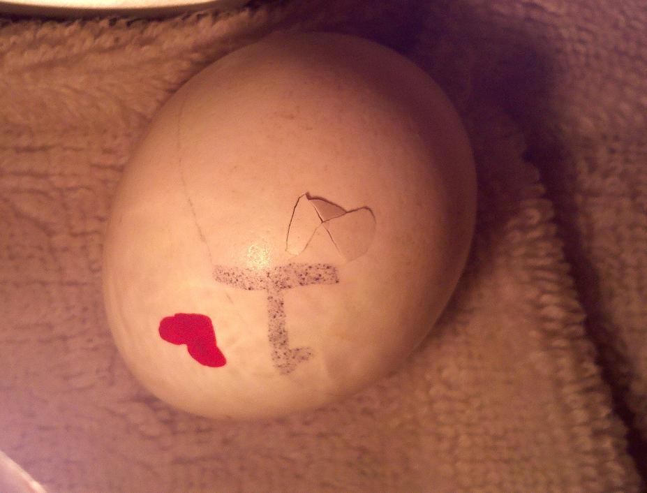 It's a polish crested hen with a easter egger rooster. The hen is on the smaller size, especiallly compared to my cochin hen. If you watch the video link I posted, you can see it's still inside the inner membrane trying to poke through it looks like. Although I did think it odd that it was in the air cell area.