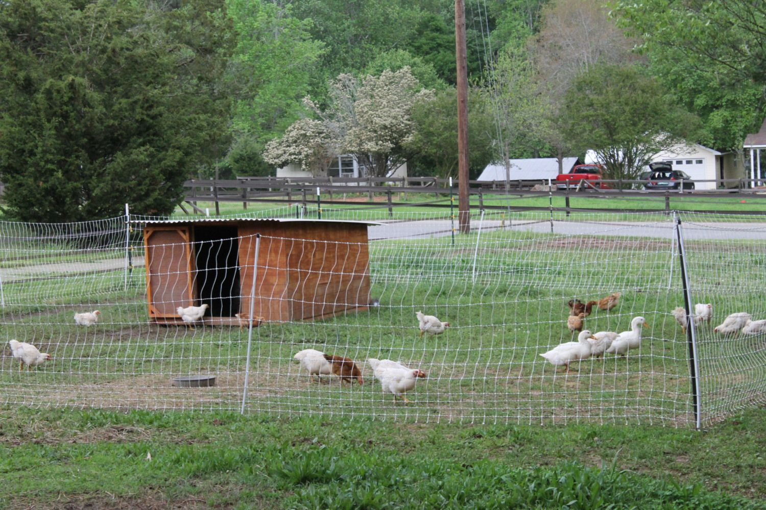 We are raising them on pasture, by using an electric poultry net, and moving it weekly. They have shelter, and we lock them up at night. They get Organic Chick grower Crumbles, as much as they can clean up in two hours, twice a day. And they get 1/2 gallon Fermented Scratch at noon. From what I've observed, they don't forage any better that the cornish cross did. They are currently on a good stand of clover, and haven't paid it much attention. The picture below was taken a few weeks ago, but it gives you a good idea of how we are raising them.