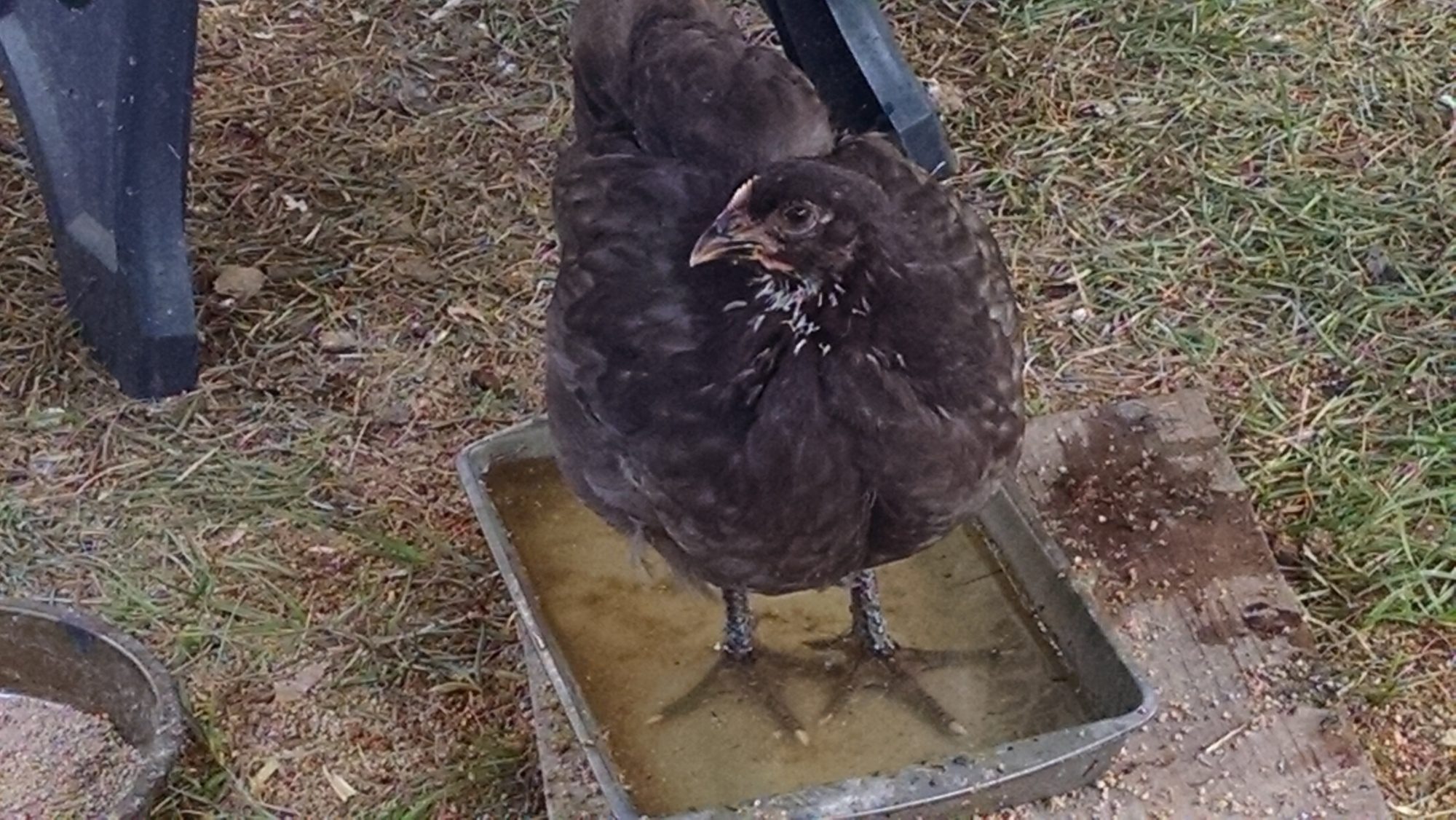 ing day, still 93 at 7 pm. They love love love ice water. They wade in it, stand in it. And drink it. When it goes over 80, we pull the ice out. We also run hose cold and spray grass in the shade, and they lay in it, dust bathe in it, and eat grass. Cools them alot. They are also crazy for cold watermelon and a few other cold fruits.