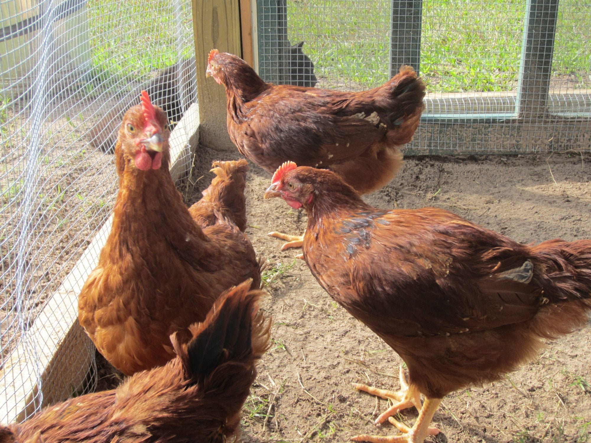 Two suspected roos next to what I'm sure is a pullet - all same age.