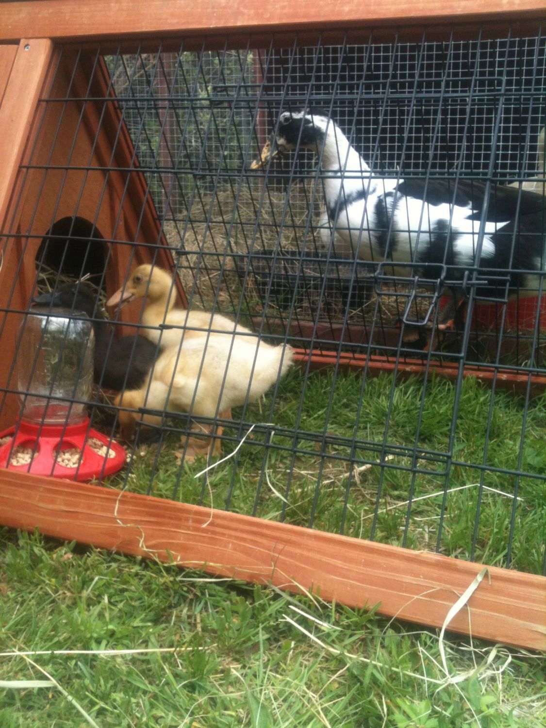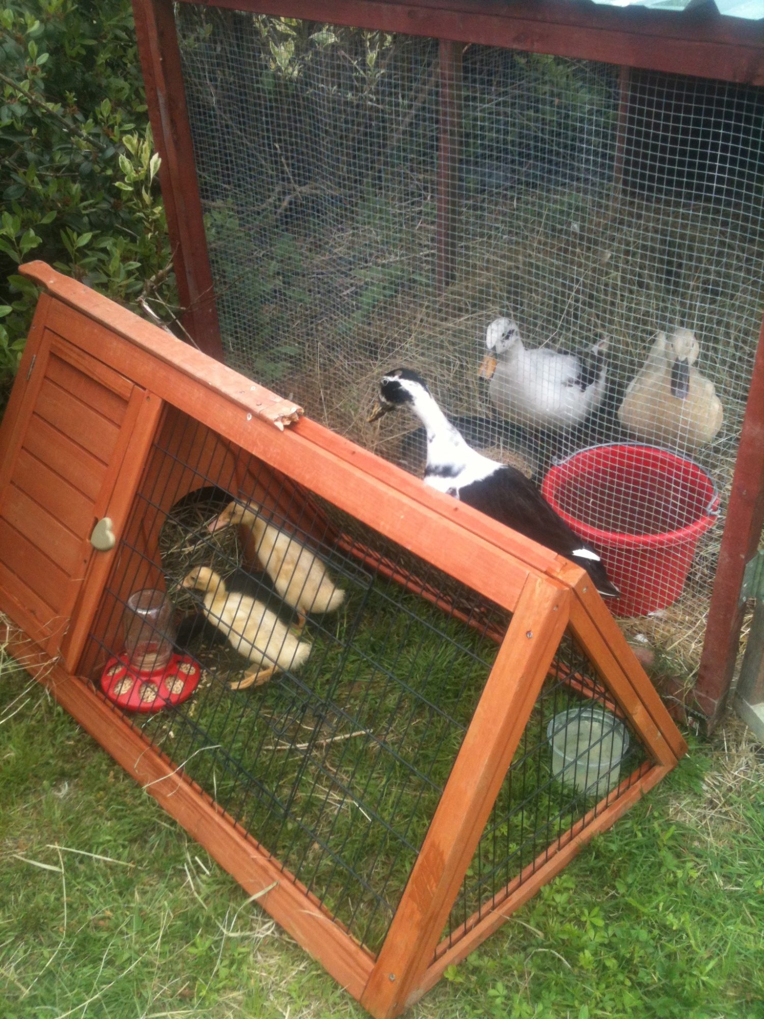 So cute! and man, I love that A-frame cage! i need one of those.. i have mallards coming next week... Love the pic of your poppy staring in lol