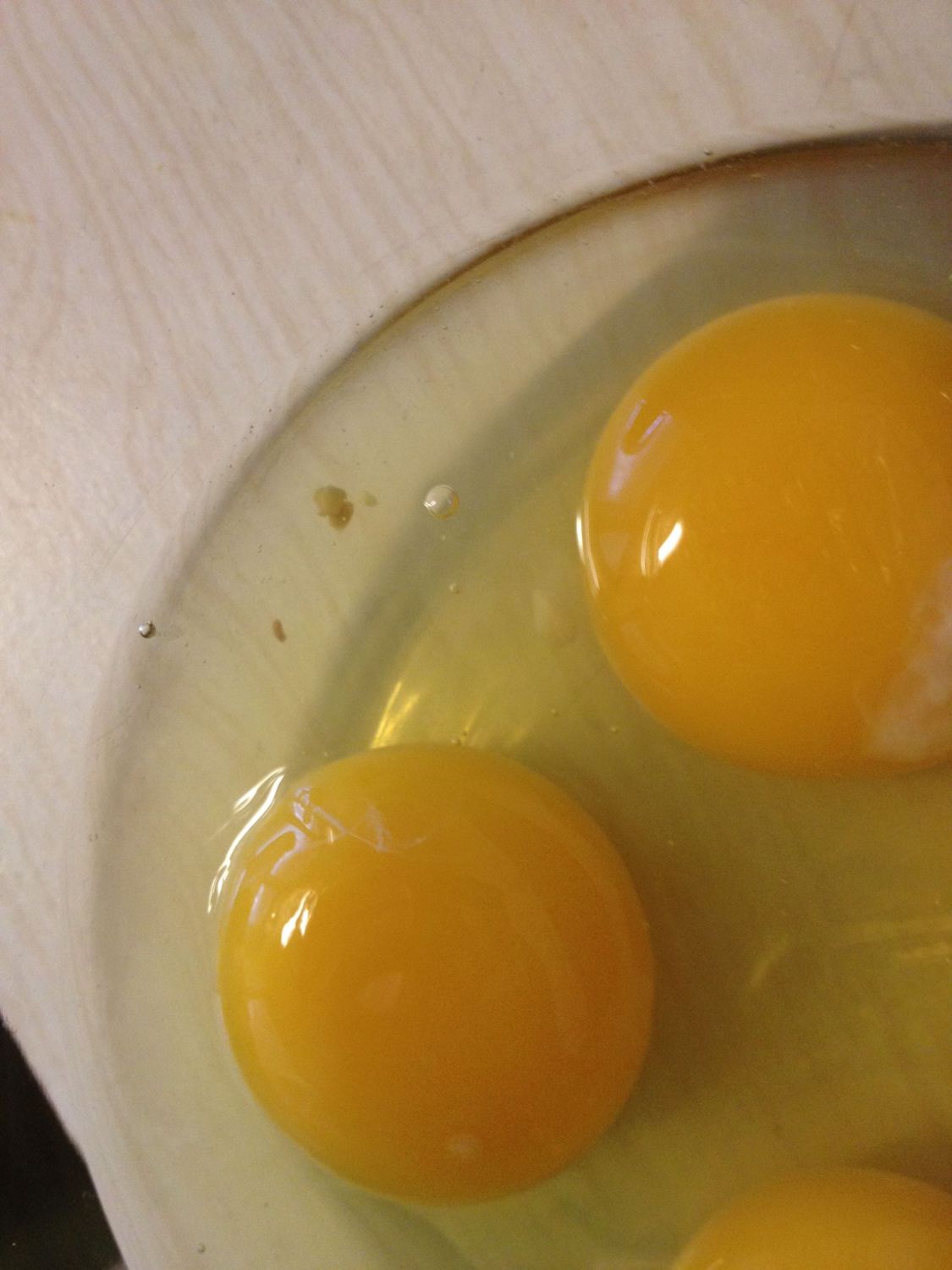 These are usually little bits of the lining of the oviduct which got shed during the egg formation process, but some may be partially broken down blood spots. They often take on the appearance of dirt or soil and vary in colour from pale yellow to dark brown or red, as shown in the images. Sizes vary from tiny specks to a few millimetres in diameter. There is a higher incidence of meat spots in eggs from older layers.