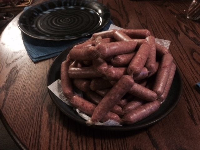 EDIT TO ADD: Sausage recipe is 5 lbs of meat, 2 Tbls Kosher salt, 1 Tbls rubbed sage, 1 Tbls black pepper, 1 Tbls red pepper flake.....
