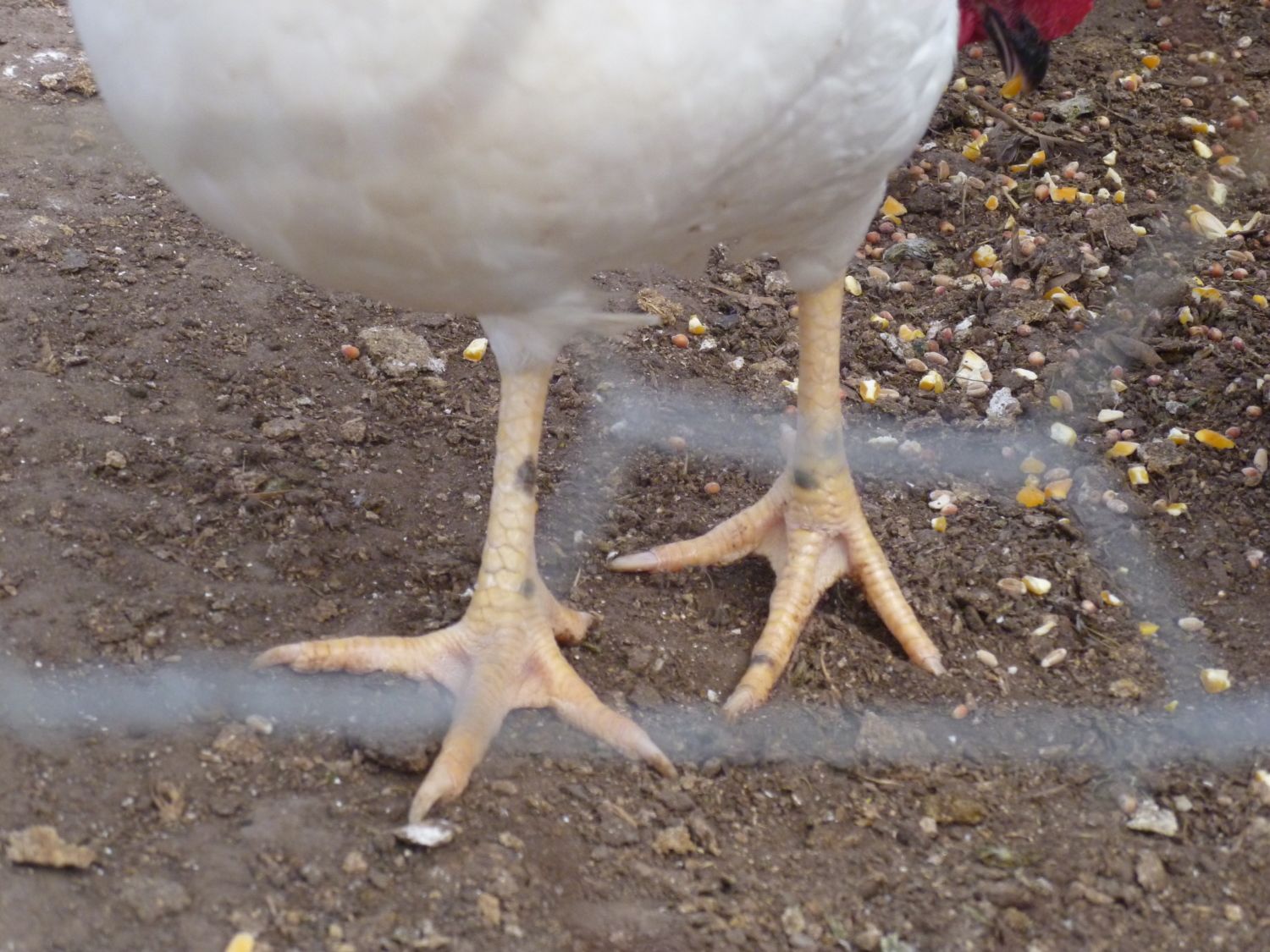 By any chance are your white leghorns actually california whites? Often they are substituted for each other and cali whites do have the ocasional black feathers hiding on their bodies, so I would not put it past them to pop out some black scales too.