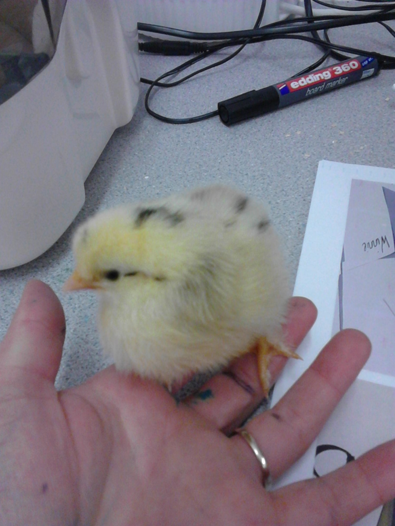 Also: don't worry about the blue bits. We used food colouring on some of the chicks to help us identify who's who.