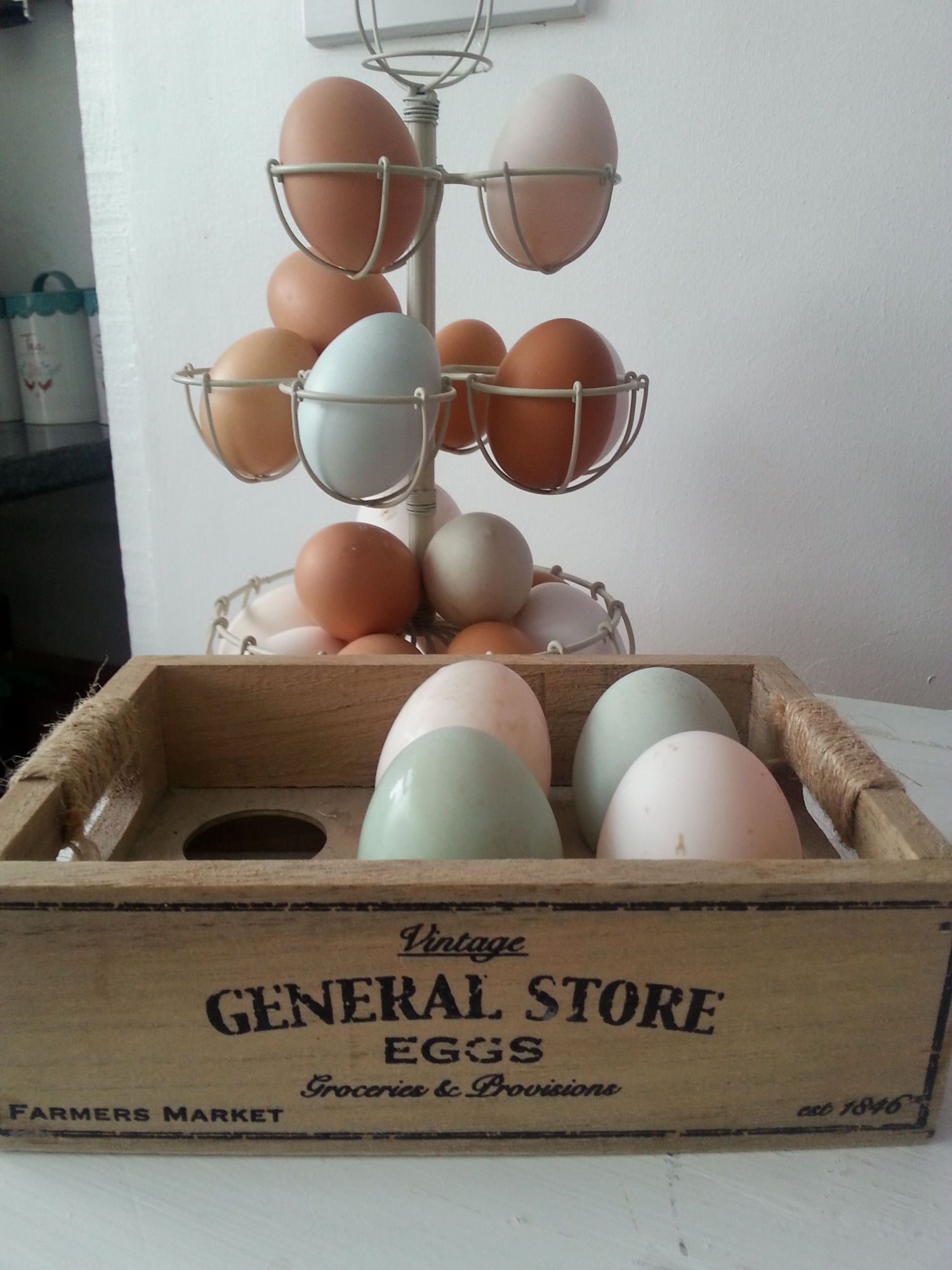 On a slightly different note, I got my first 2 "blue" ducks eggs yesterday and this morning. She's been freeloading for months whilst everything else has been laying! They're a lovely addition to the egg rack.