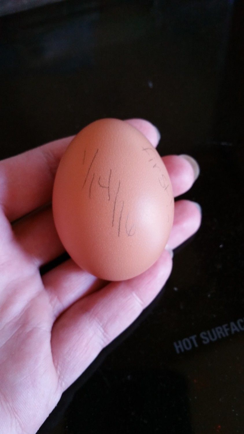 Came home and went to go clean out the coop. The boxes were ready a while back but they were sleeping in and pooping in them so we shut them up again. When I got to the coop there was not one...but two beautiful brown (one with little speckles) eggs on the floor. Guess we'll have to start opening the nests in the morning, so they can get the hang of it. Not sure who to thank yet, though my BR has been squatting for a while now so she may be one of the culprits.
