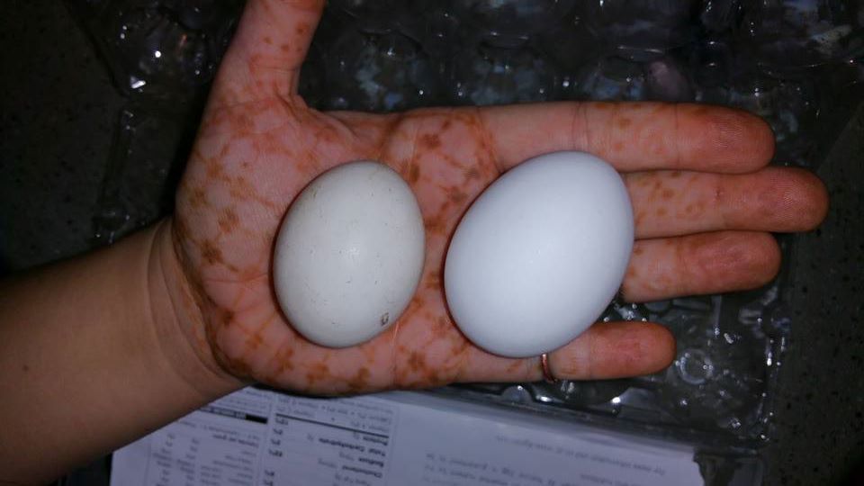 Here is a picture for comparison with a store-bought egg (on the right). Bianca’s egg is heavier than the store-bought one.