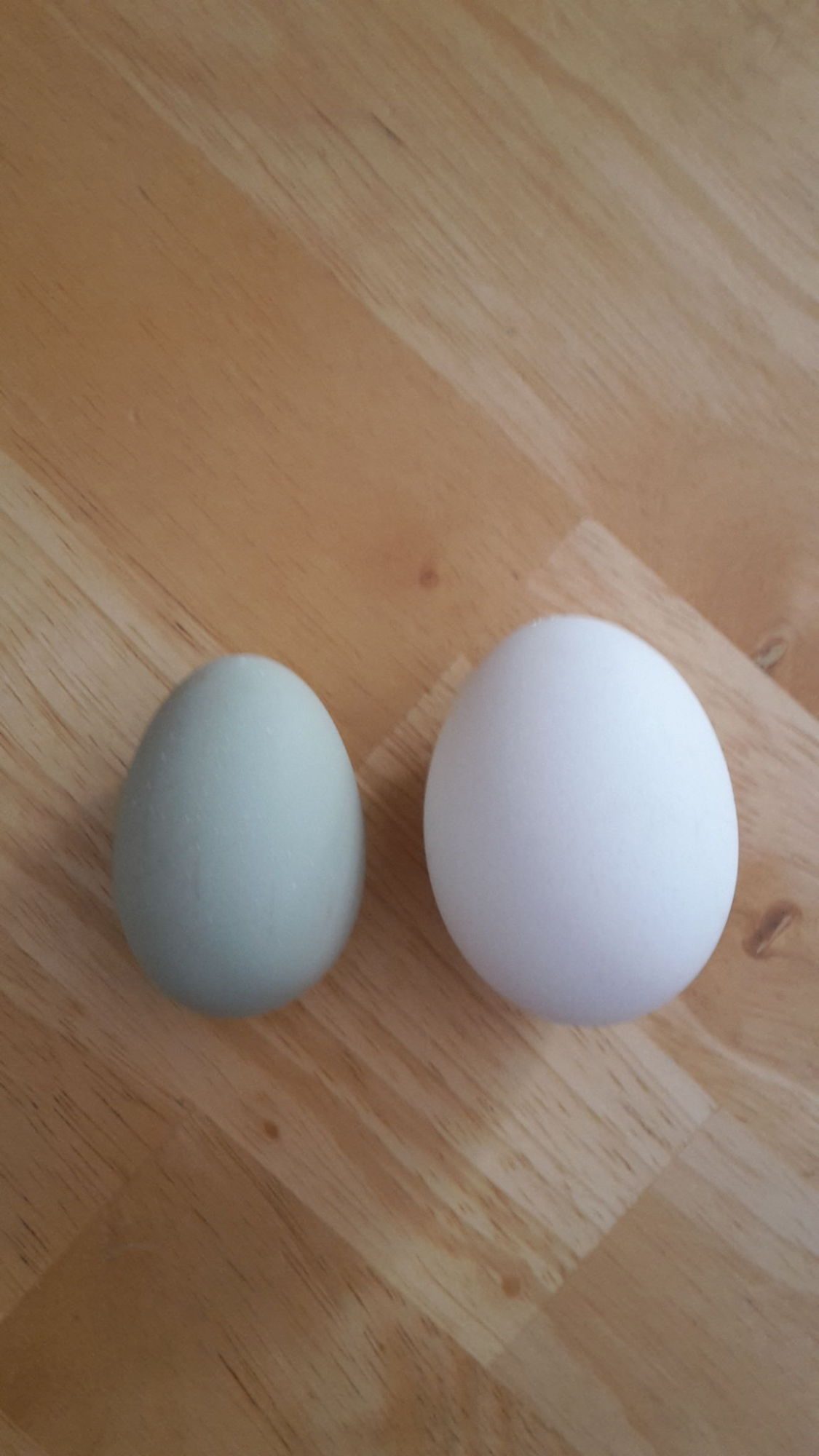 Coco's little greenish egg next to a store bought egg.