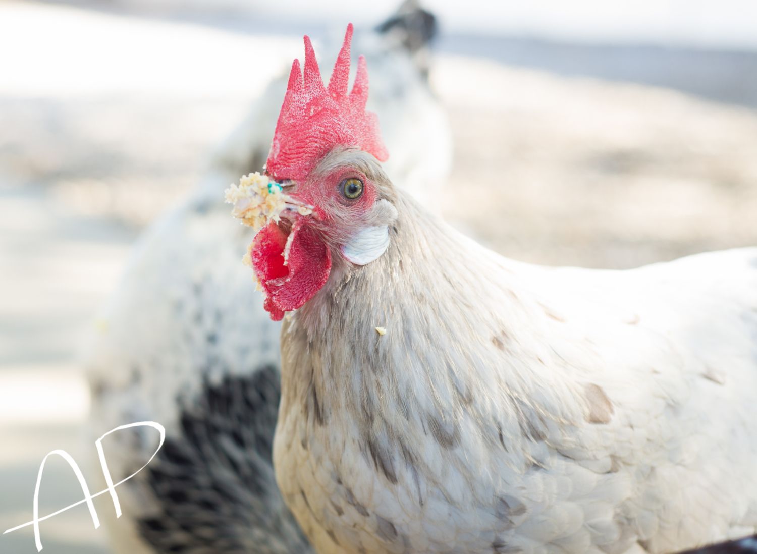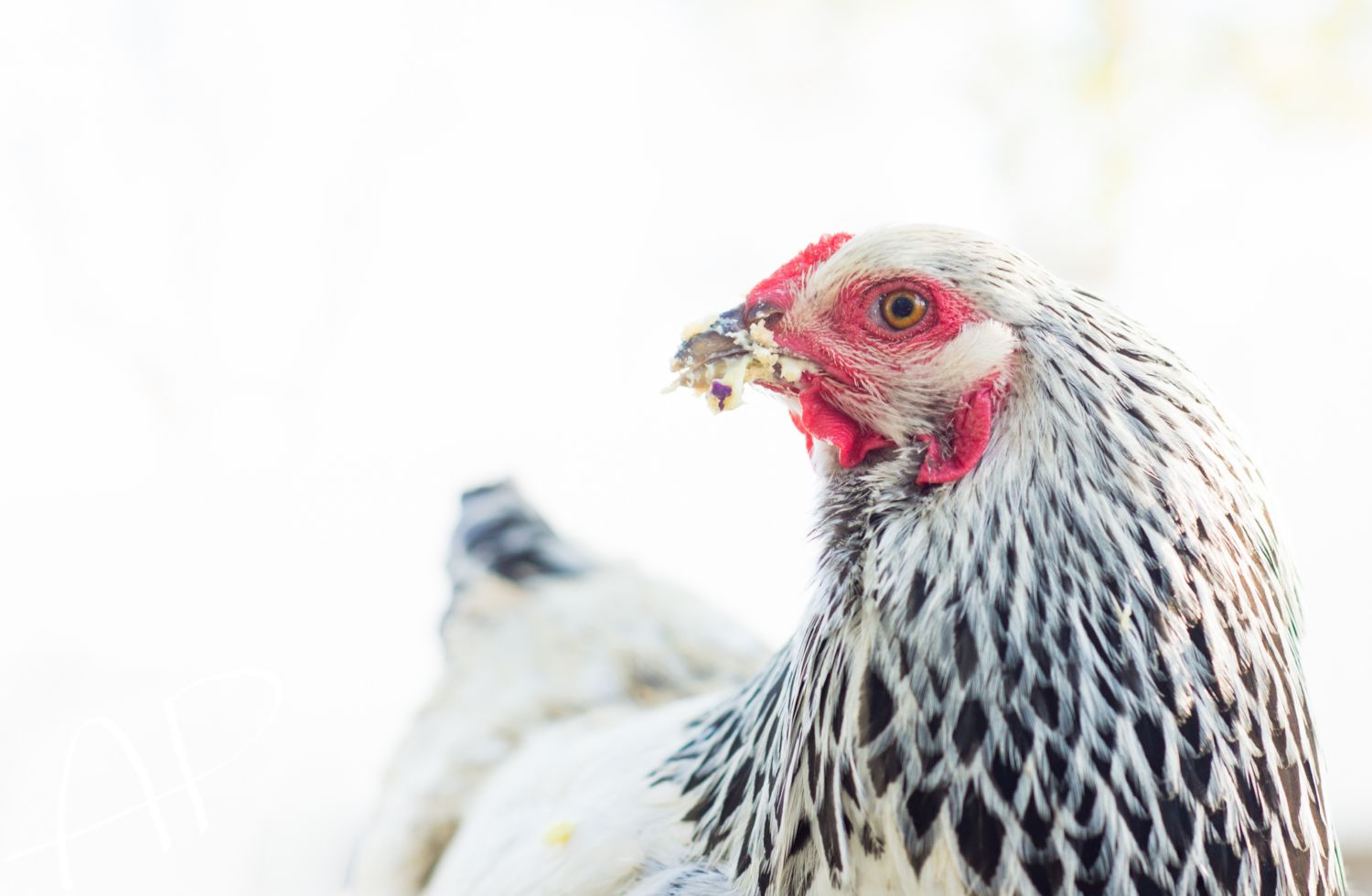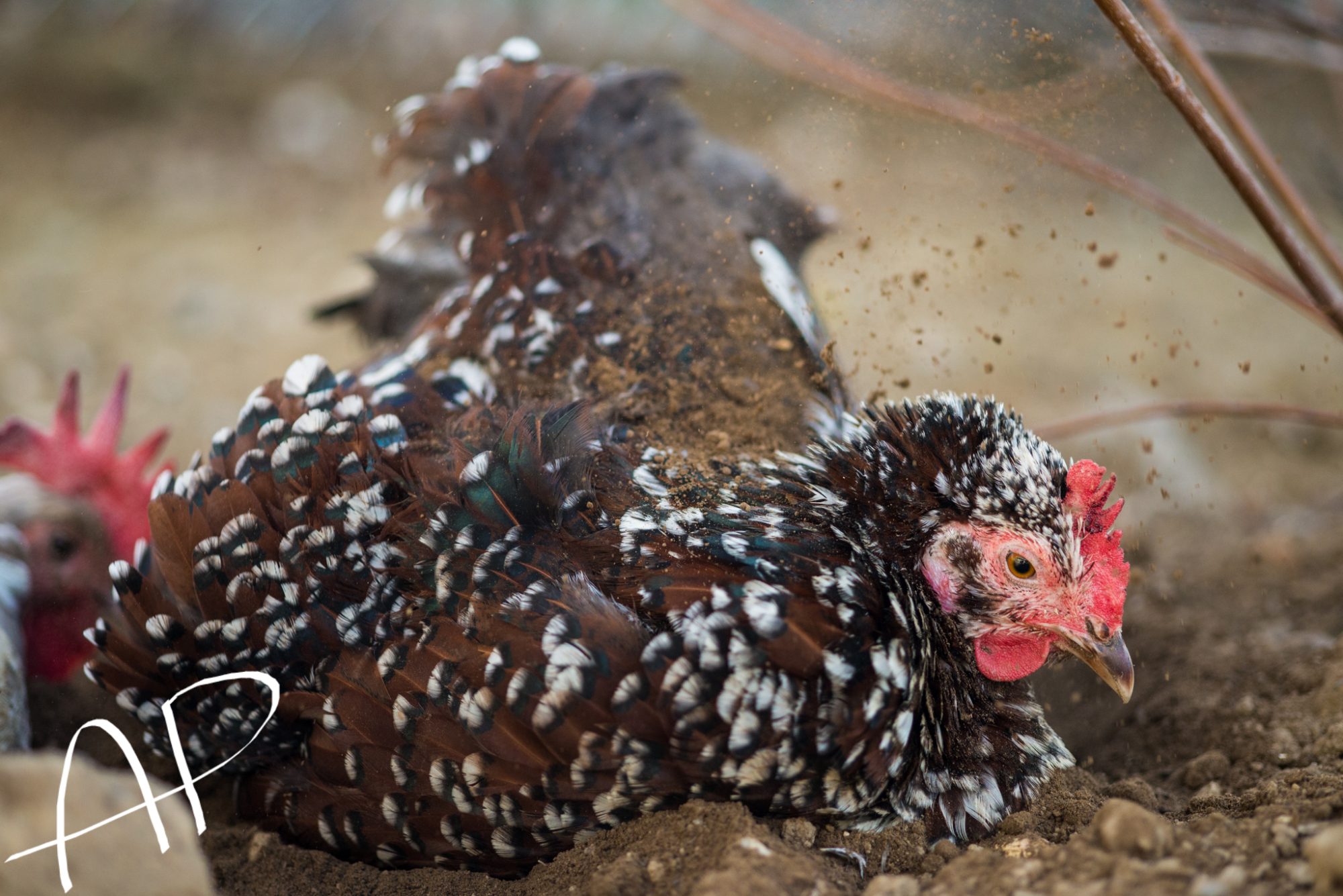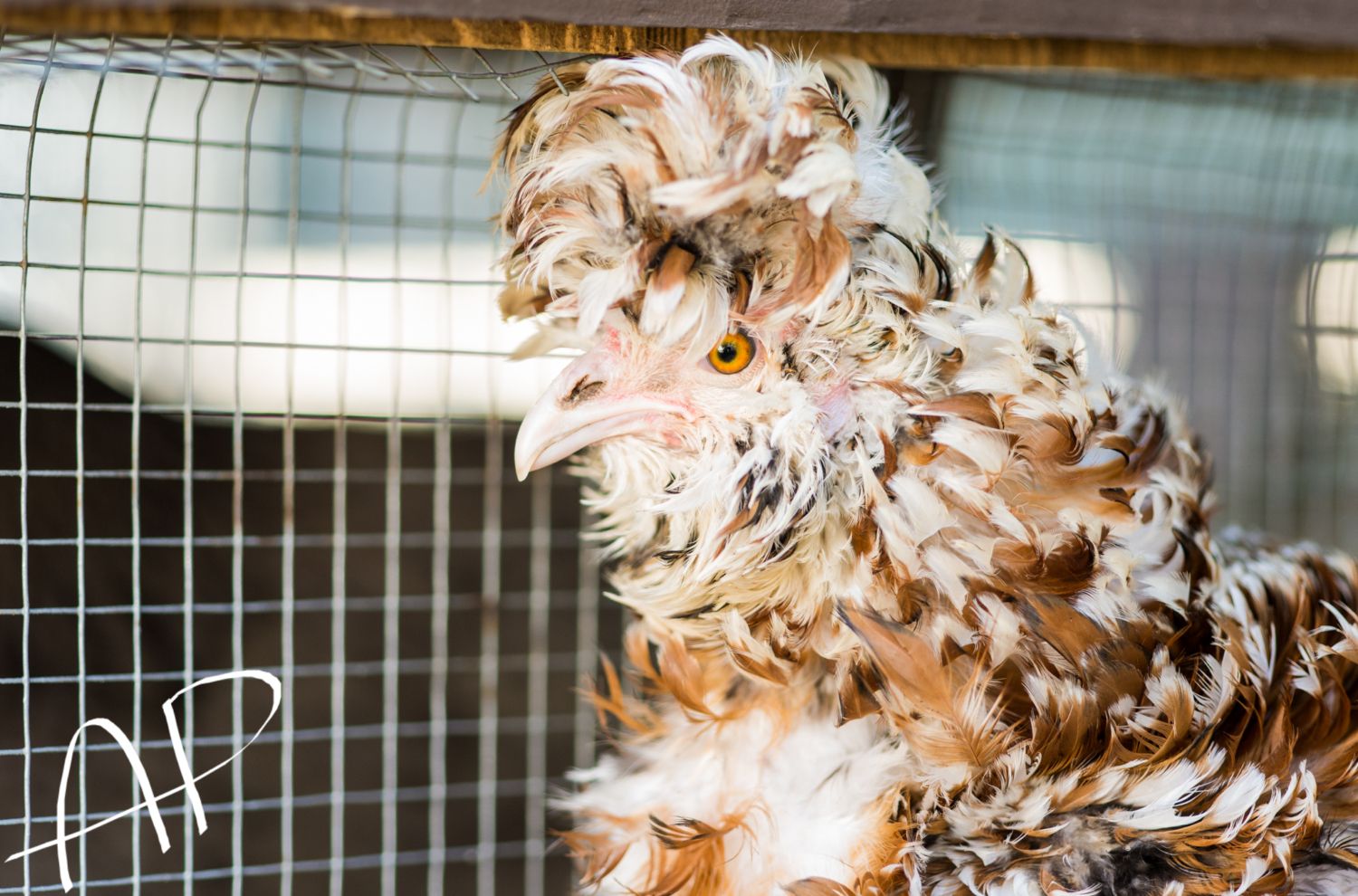 But I also enjoy photographing chickens, of course!! This is my new frizzle Tolbunt Polish hen, I got her today.
