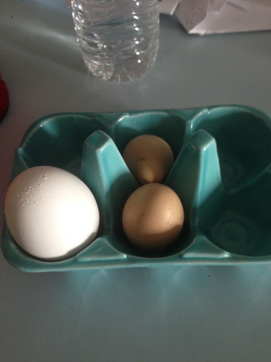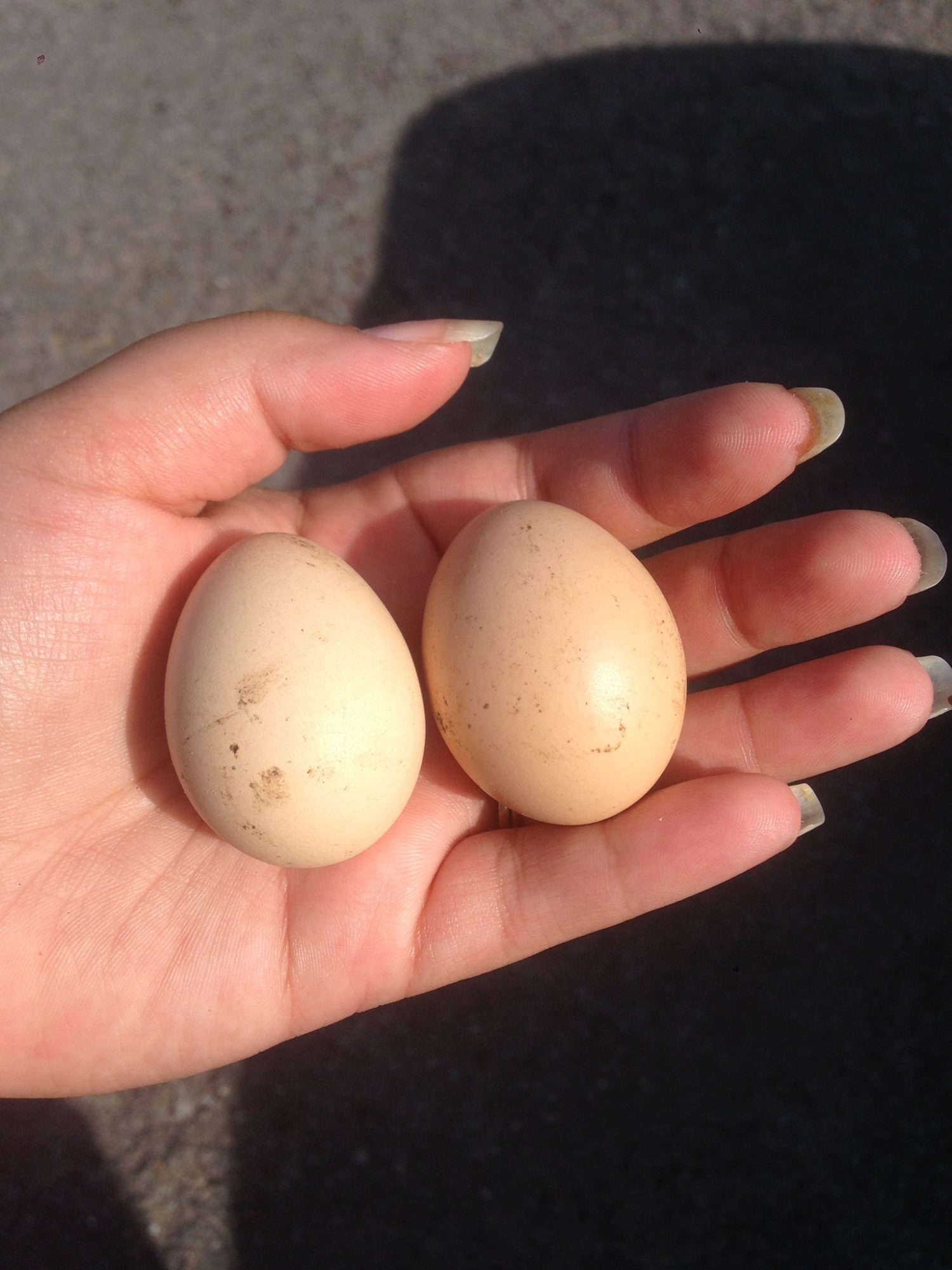 This is my first year raising chickens. I have 14 right now 7 of them are 18 weeks old and 7 of them are 13 weeks old. I wasn't expecting anyone to lay eggs yet, but today I noticed one in the coop and one in the run. Both eggs are roughly the same size, although one is a bit smaller, and they look similar so perhaps they are being laid by the same lady. I was wondering if anyone could tell me which chicken lays eggs like this?