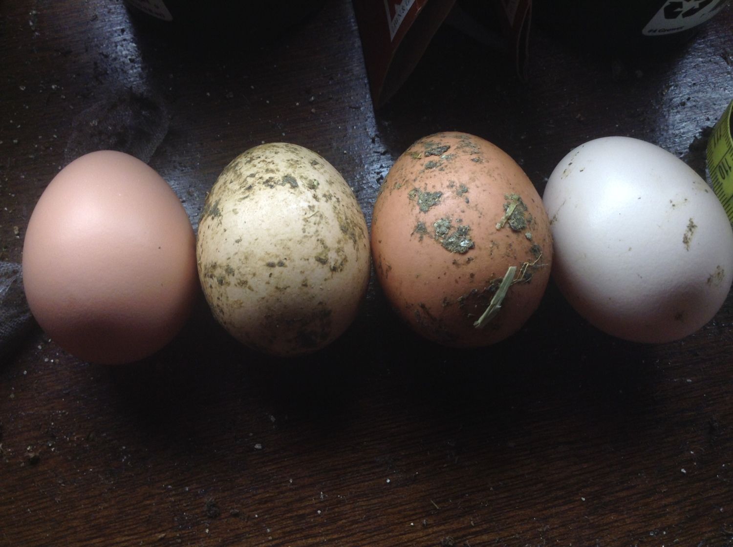 Hens: x1 Buff Orpington x2 Black Australorp x1 Mottled Java (I have a EE, too, but I can tell who laid the green eggs) I had 4 different tinted eggs, so one must have had an odd one, but I included all 4 tints. Here they are: Who laid what?