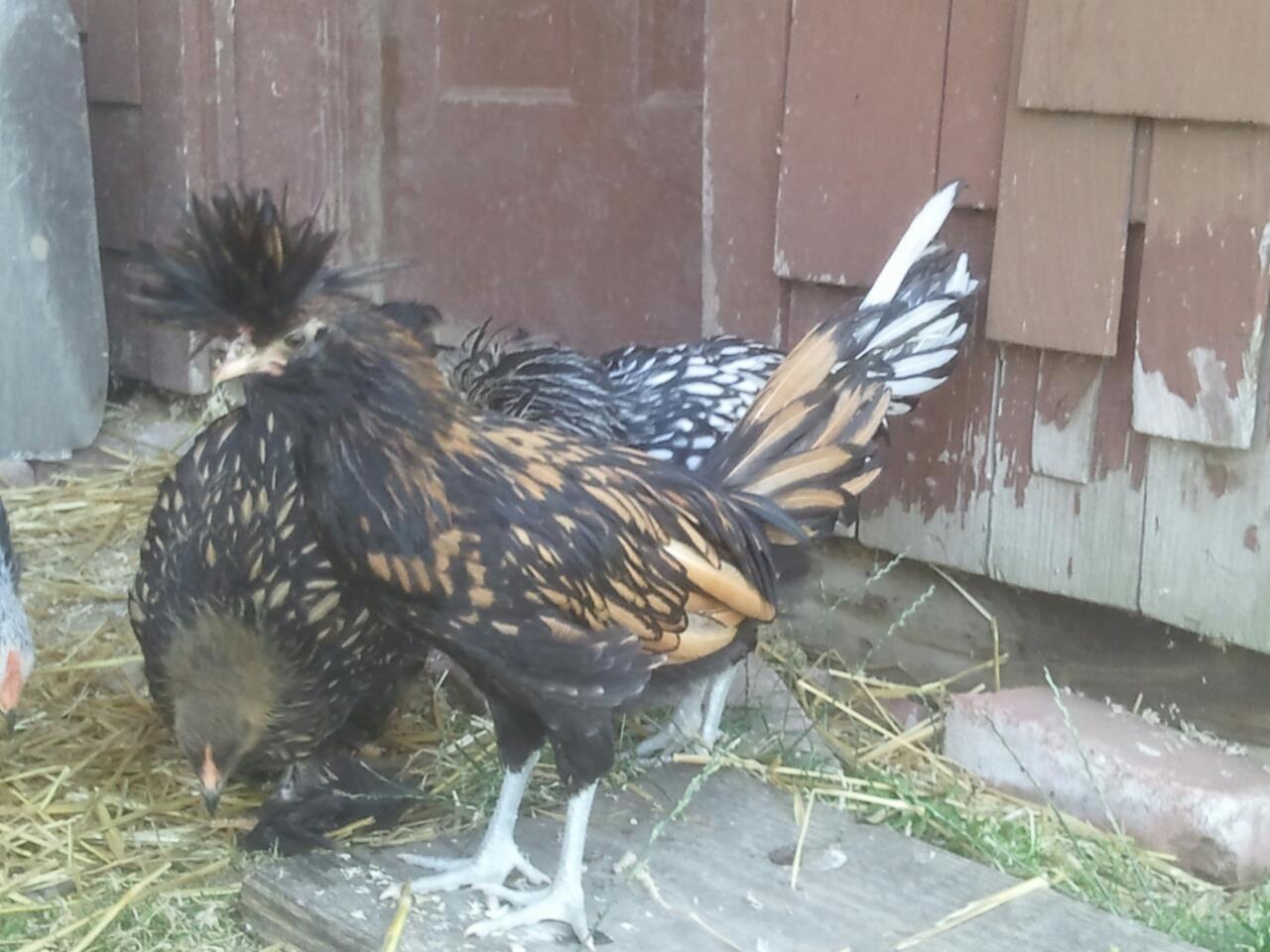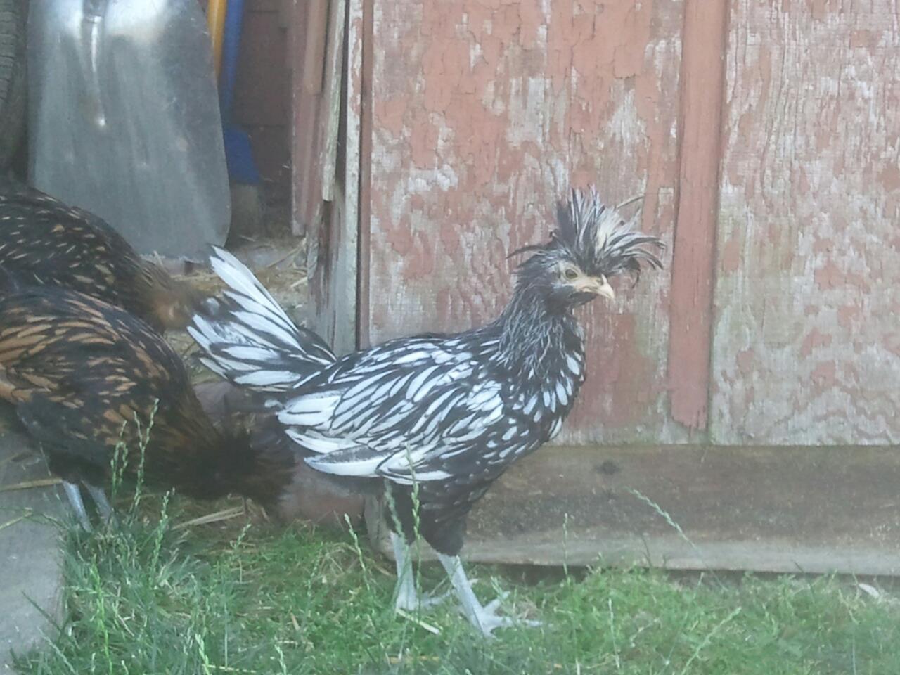 WIth my polish chicks, the male has a big "tophat" compared to the other and the feathers on top go up then curve to look like a well rounded "hat". Also, the comb is usually bigger in roosters. Even more, if it's growing out the tail feathers he'll probably have ones that curve down wards. Another thing is the neck. Males tend to have skinny, long neck feathers that are really dense in the neck. Last, you could check his legs, the roosters usually get much thicker legs.