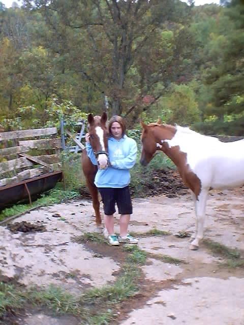 Thunder (RIP) he was my first pony. I was 12 or 13 in this picture. I am holding Thunder and Stormy is beside.