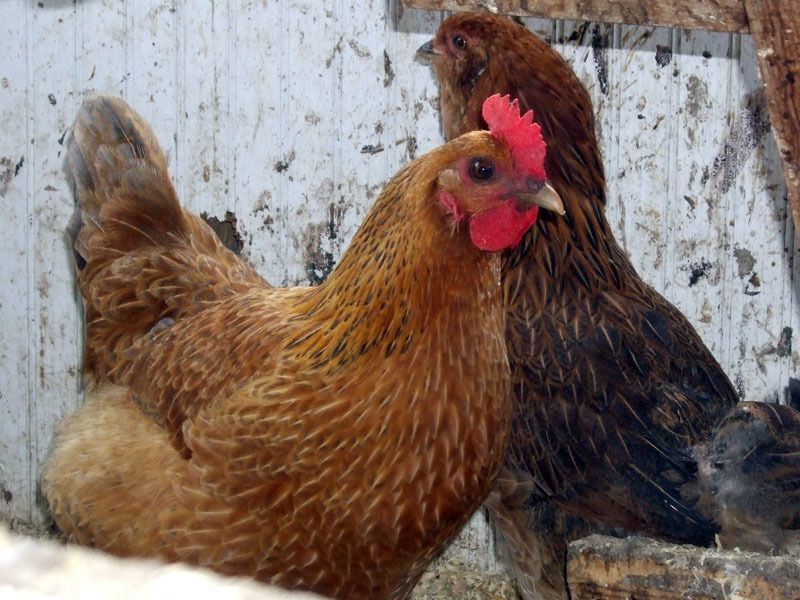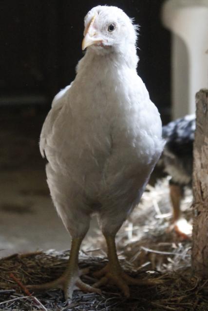 Well, it's been a while! Here are my two grocery girls now! They started laying creamy beige eggs (a couple of shades lighter than the ones they hatched from) three weeks ago. They've hardly missed a day - every morning, the two eggs are waiting. I can really tell they're from egg-laying stock, because my purebred hens were never able to crank out an egg every single day.