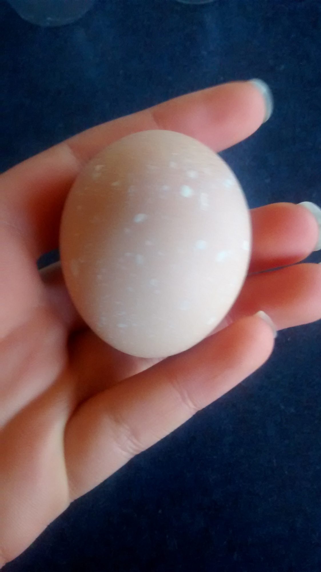 This is a egg I got this morning. I only have two girls (brown sex link and black sex link) laying right now and they don't lay speckled eggs.