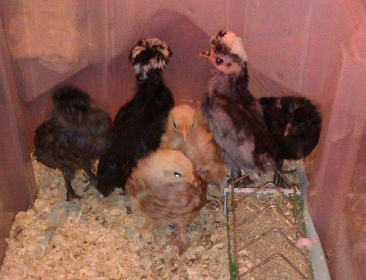Top 2 are same bird, a Pekin, supposed to be lemon but looks more like a choc/lemon lace. The group is of 4 polish and 2 Pekins. (The second Pekin is all lemon). The fourth is of one of the Polish. I have lemon sabelpoots hayching as we speak and some more Pekins due next week.