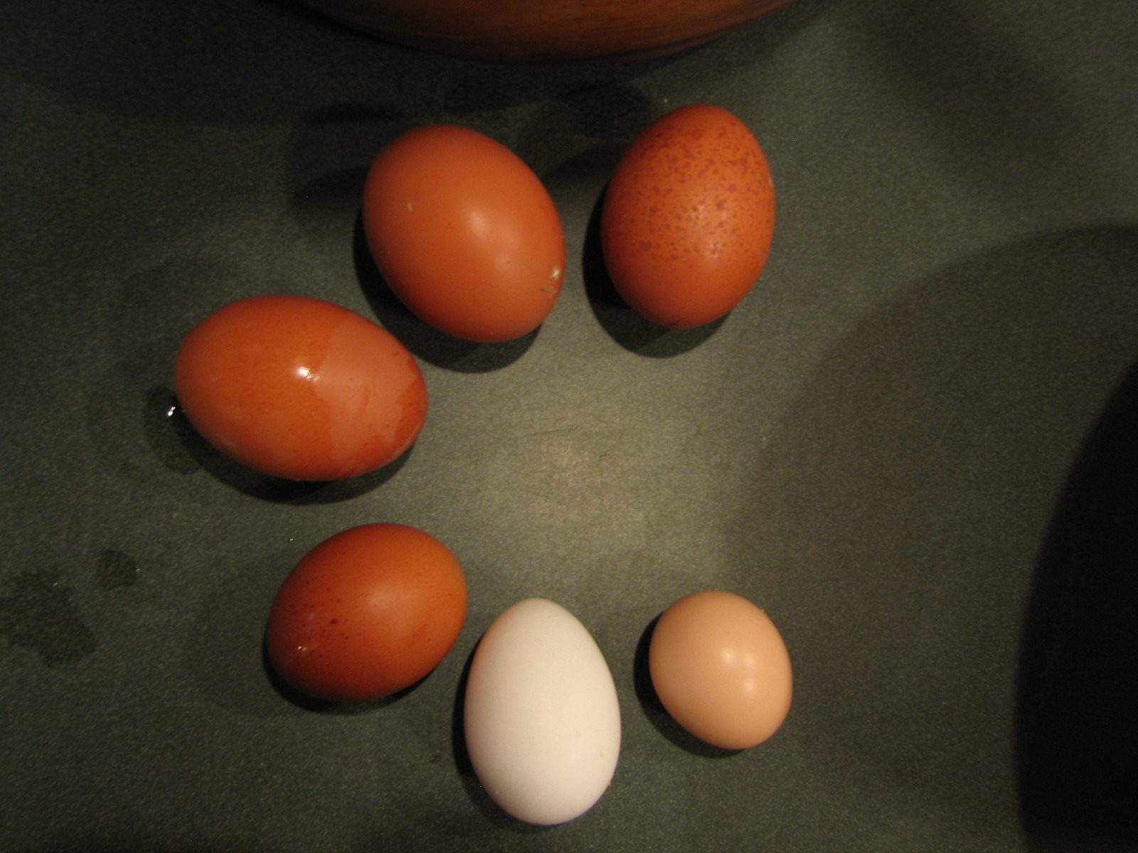 In the past few weeks, I have been finding a few large brown eggs along with the usual smaller speckled ones...I have a cuckoo maran from Ideal Poultry, but I'm pretty sure I don't have any other birds that would lay brown eggs. I'm guessing that the maran is laying the bigger ones, but then I'm not sure if she could be laying the smaller ones as well.. here's a picture (the top three are obviously the larger ones - the smaller one on the bottom left is the other type of brown egg I have been collecting.)