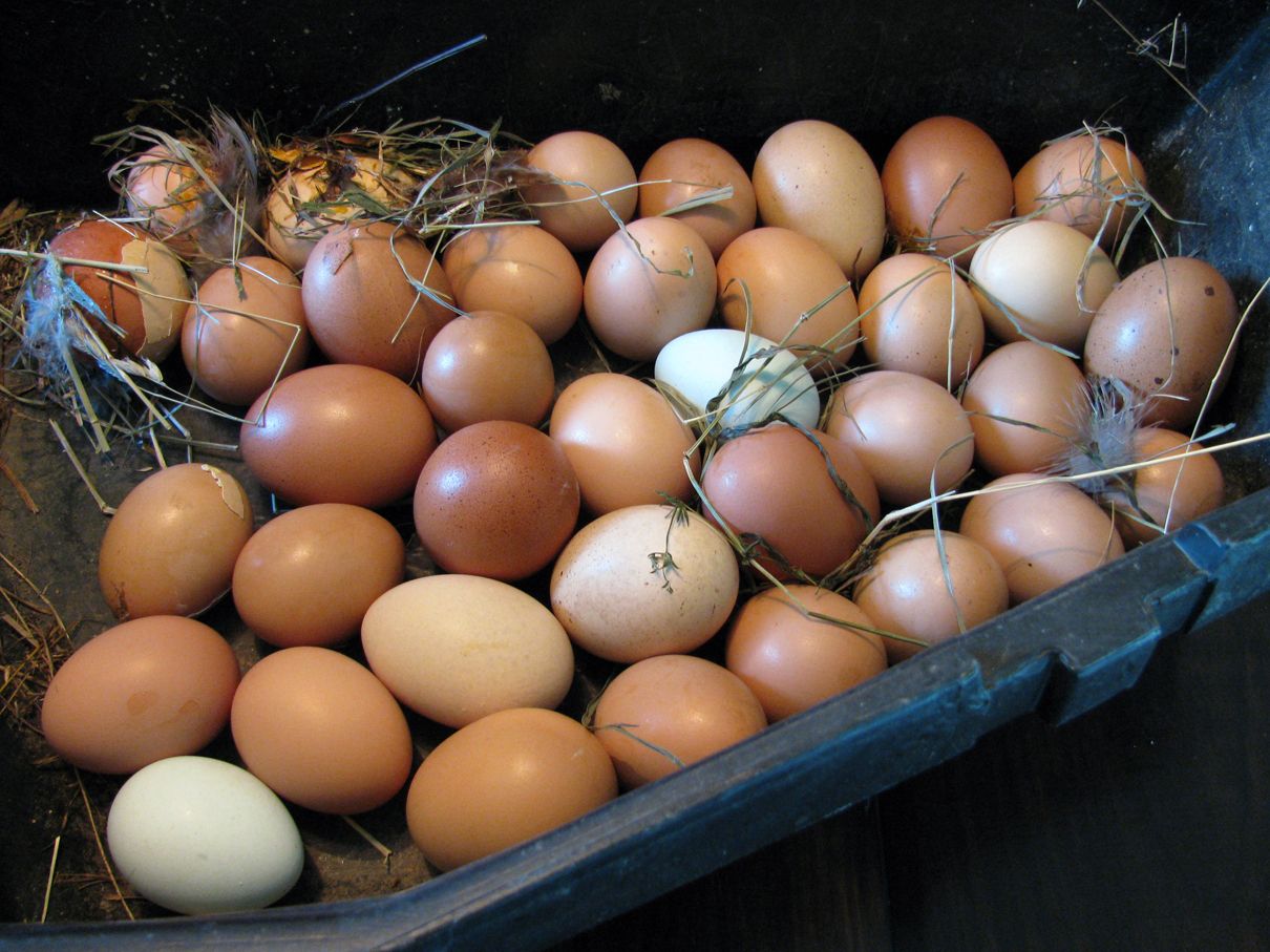 Most of my hens are molting heavily or regaining weight post-molt and I am getting only about 2-6 eggs per day from 27 hens (not counting the bantams in that number since they keep going broody and don't lay well this time of year anyway). Of those 27 hens, 12 of them are over 4 years old, with a few almost 6 years old.
