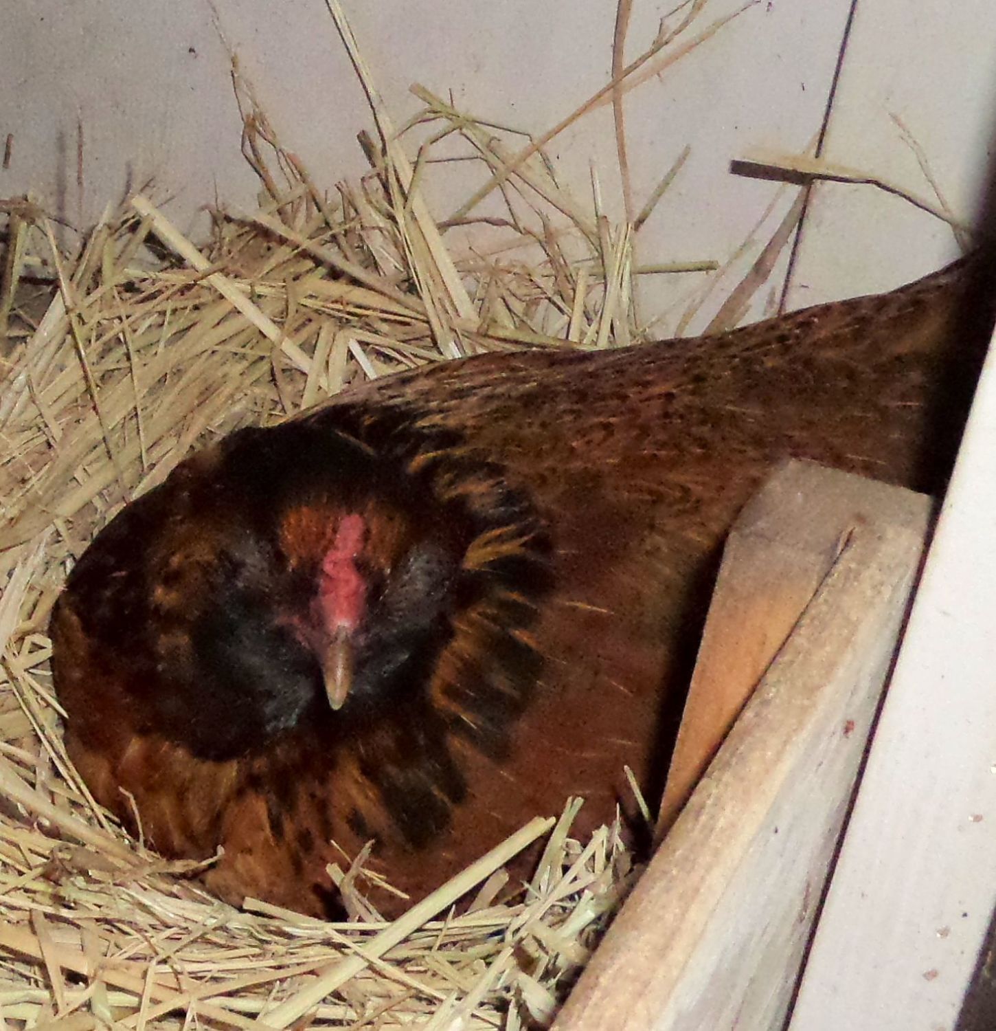 I also had my older hen, Itty Bitty lay a small egg yesterday. Hope it is a hiccup. She is my bitchy hen not liking the new laying girls interloping in her favorite nest where she lays. Picture of egg (she is the only one who lays brown eggs) and then one of the younger girls in Itty Bitty's nest. I took Quinn's picture today. The chickens all seem to prefer Itty Bitty's corner instead of the nesting boxes. I put in some fake eggs and yes; sometimes they use a box but not often.
