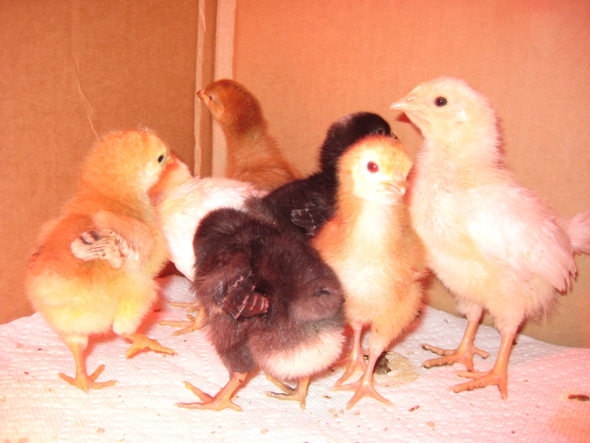 So now the fuzzy butts are showing small tail feathers. It is about week 3 of their life, I am guessing. They are eating medicated feed, and water with some apple cider vinegar in it. I occasionally throw in some young weeds and they peck and chase each other hilariously. So far, so good. I will post pics soon.