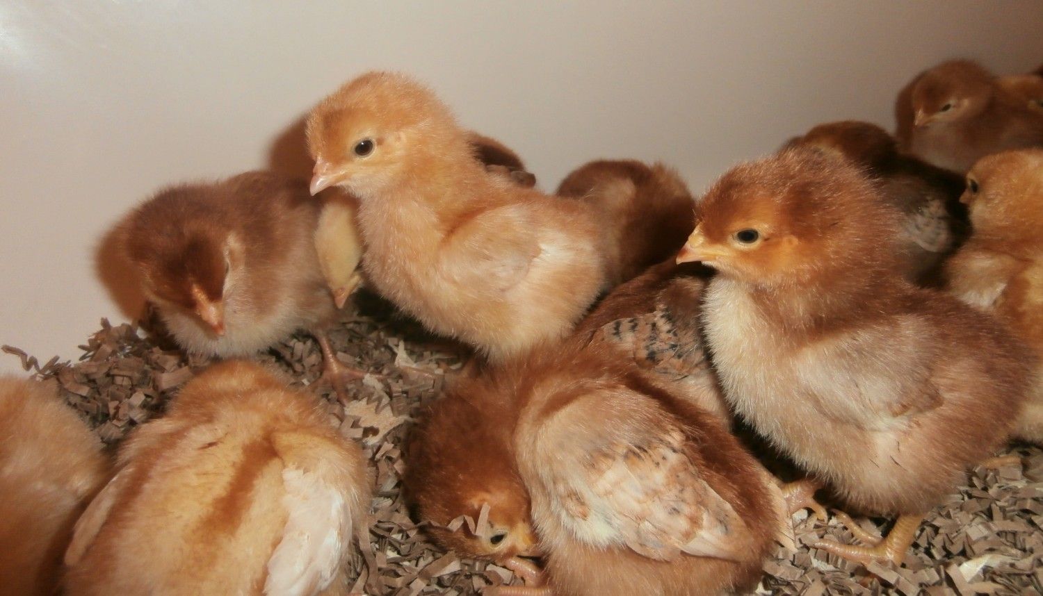 We now have 17 acres, 31 tiny chicks and 1 Rhode Island Red Rooster. They keep us happy, and my 4 children all love to cuddle the chicks!