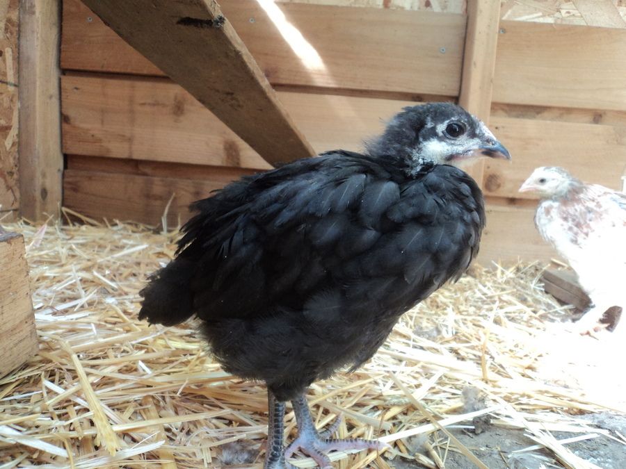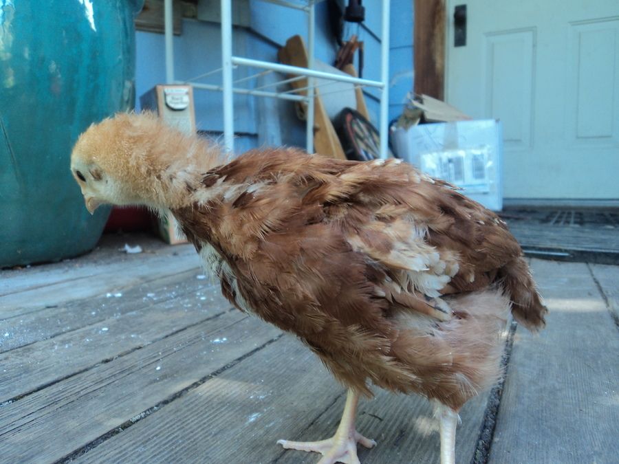So these chicks should be about 6 or so weeks old, but even though they are the same age the australorp very quickly outgrew the production red. While the australorp got to move outside with the other older chickies, Cal(the red) had to stay inside with the younger ones. Other than the fact she is very small, she seems perfectly healthy. I don't understand why she is so small though.