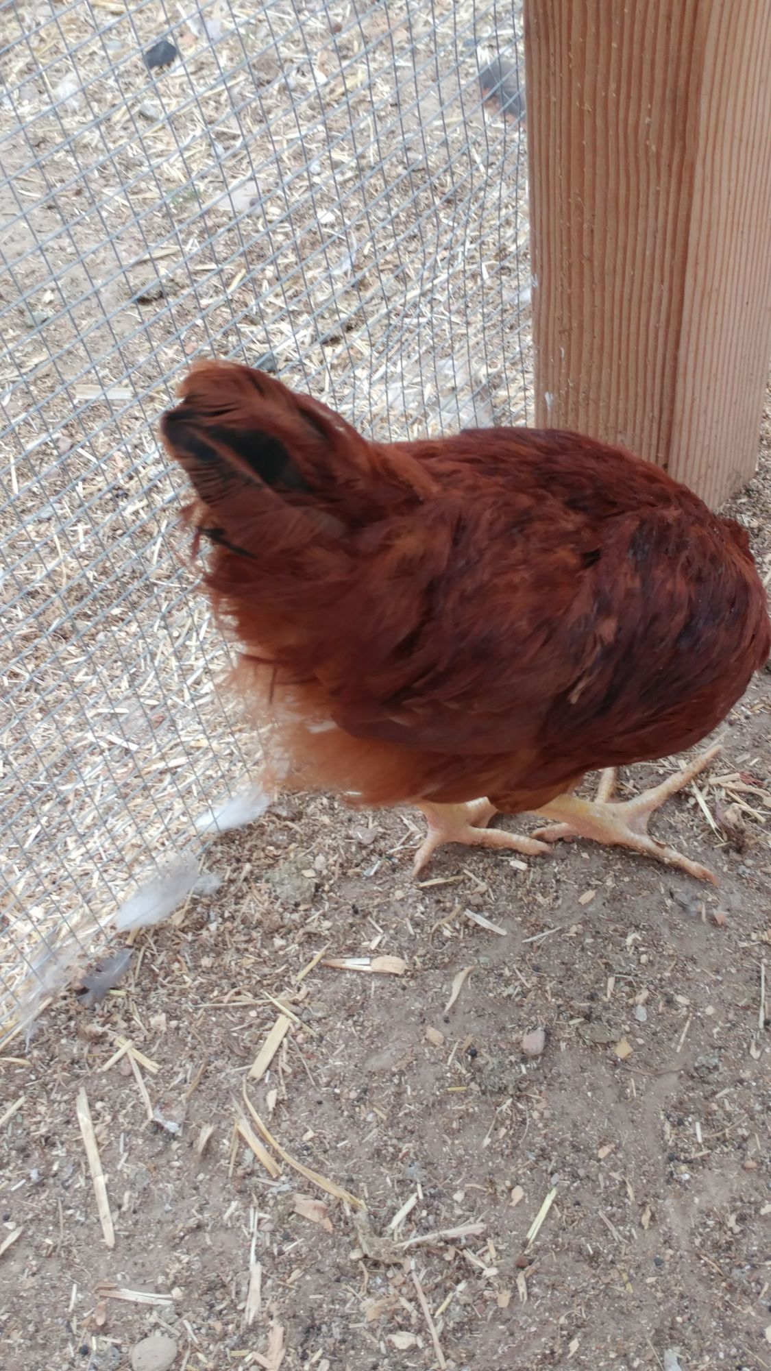 We got the RIR at the end of March. It was said to be a pullet, and also said to be about 10 weeks old. We have a mixed flock of birds. The RIR has grown very very slow. Our silky that was yhe same age started laying last month. This one has been very challenging to tell. Thank you so much for weighing in.