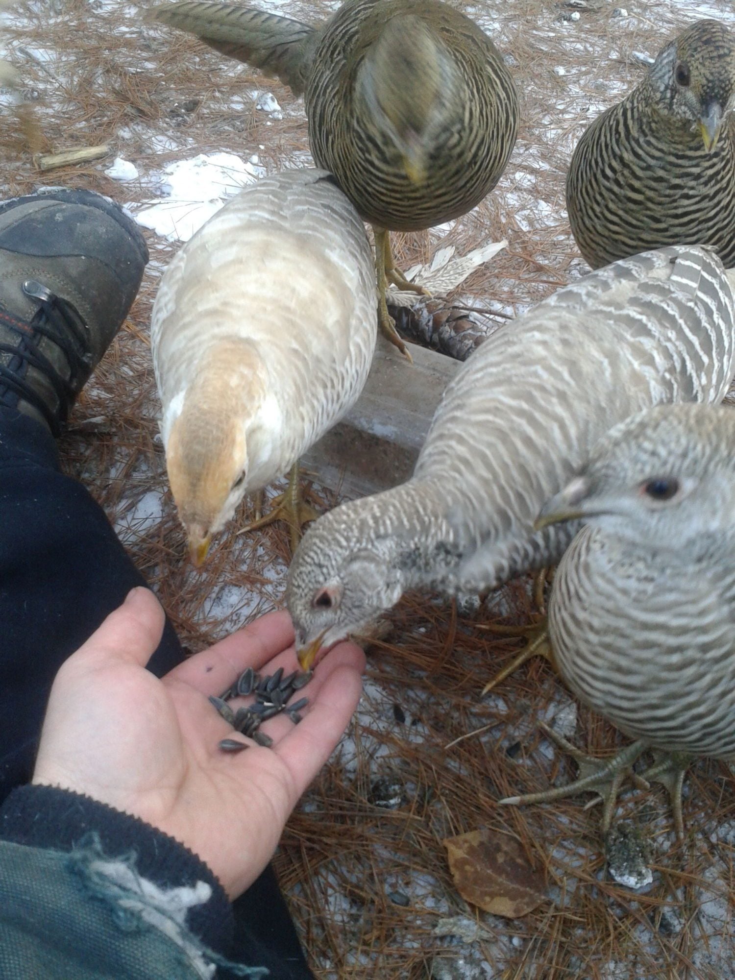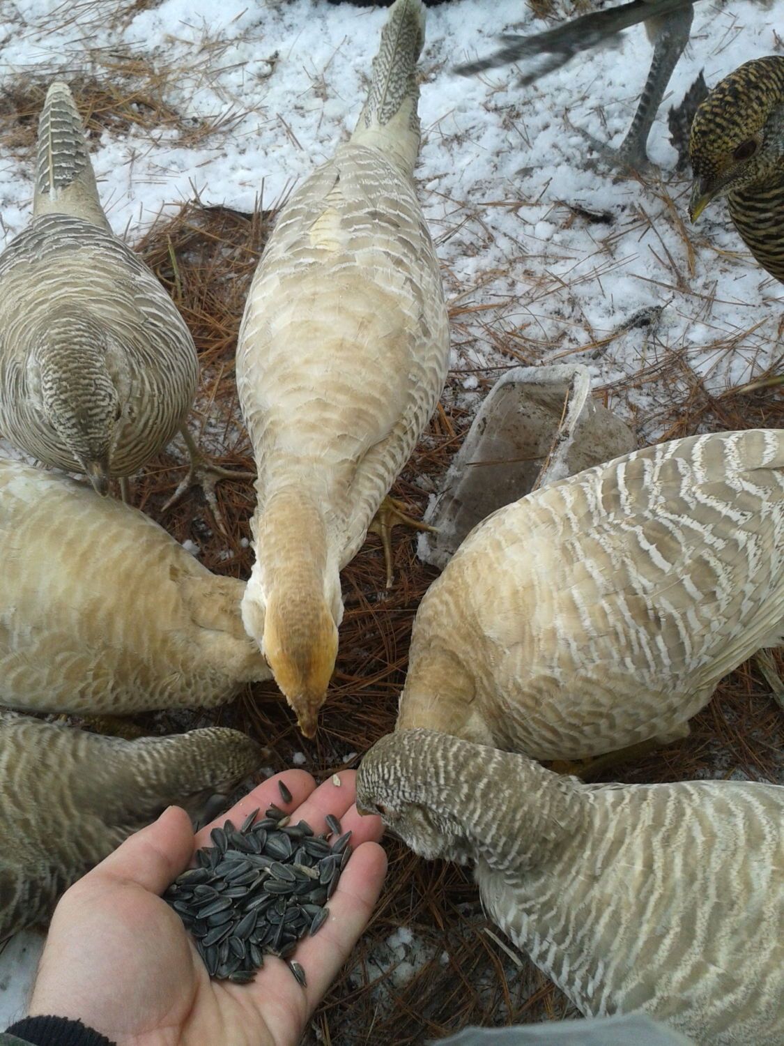 I guess the fermented feed, Oats, seeds. Brown sugar, Bragg's apple cider vinegar with the mother in it, yeast and then it makes a mish mash is a big draw but that last bit of adding the oils with vitamins and minerals can not hurt.
