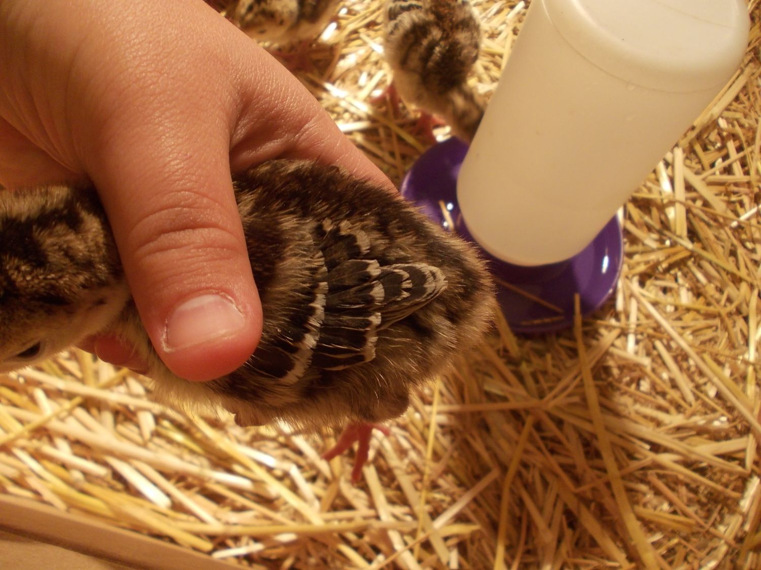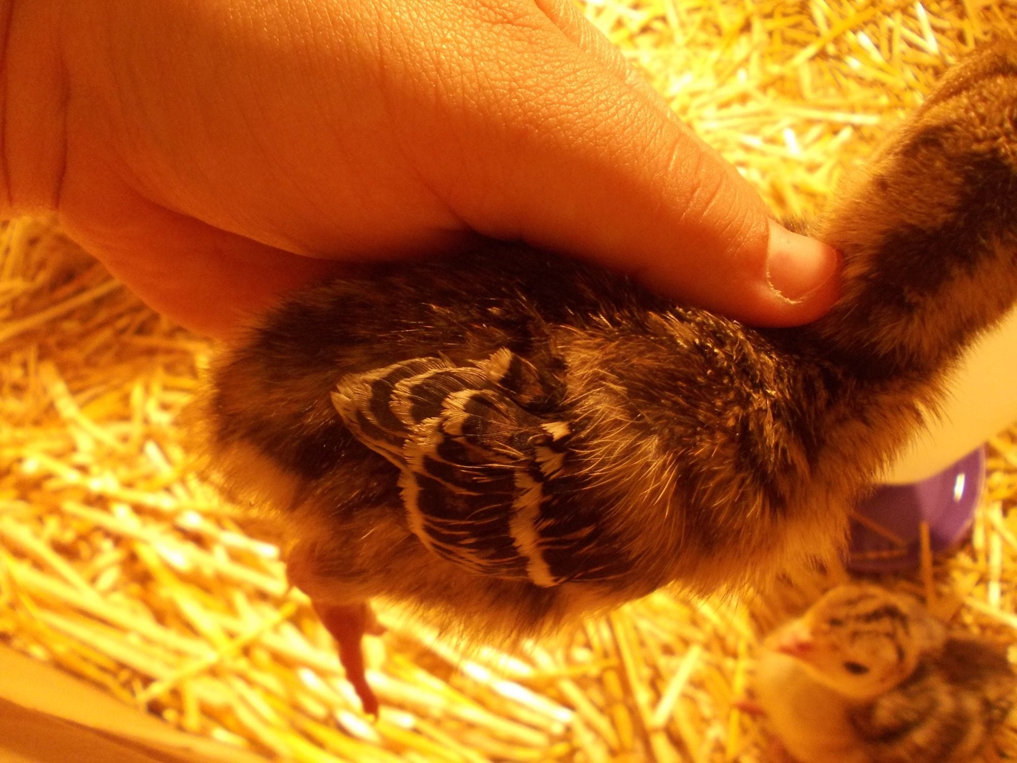 Our chicks are somewhere between 4-5 days old and I just noticed something interesting, it appears that the longest feathers on their wings rest at different places at their sides when their wings are tucked. Might this have something to do with their genders? If not why is it?