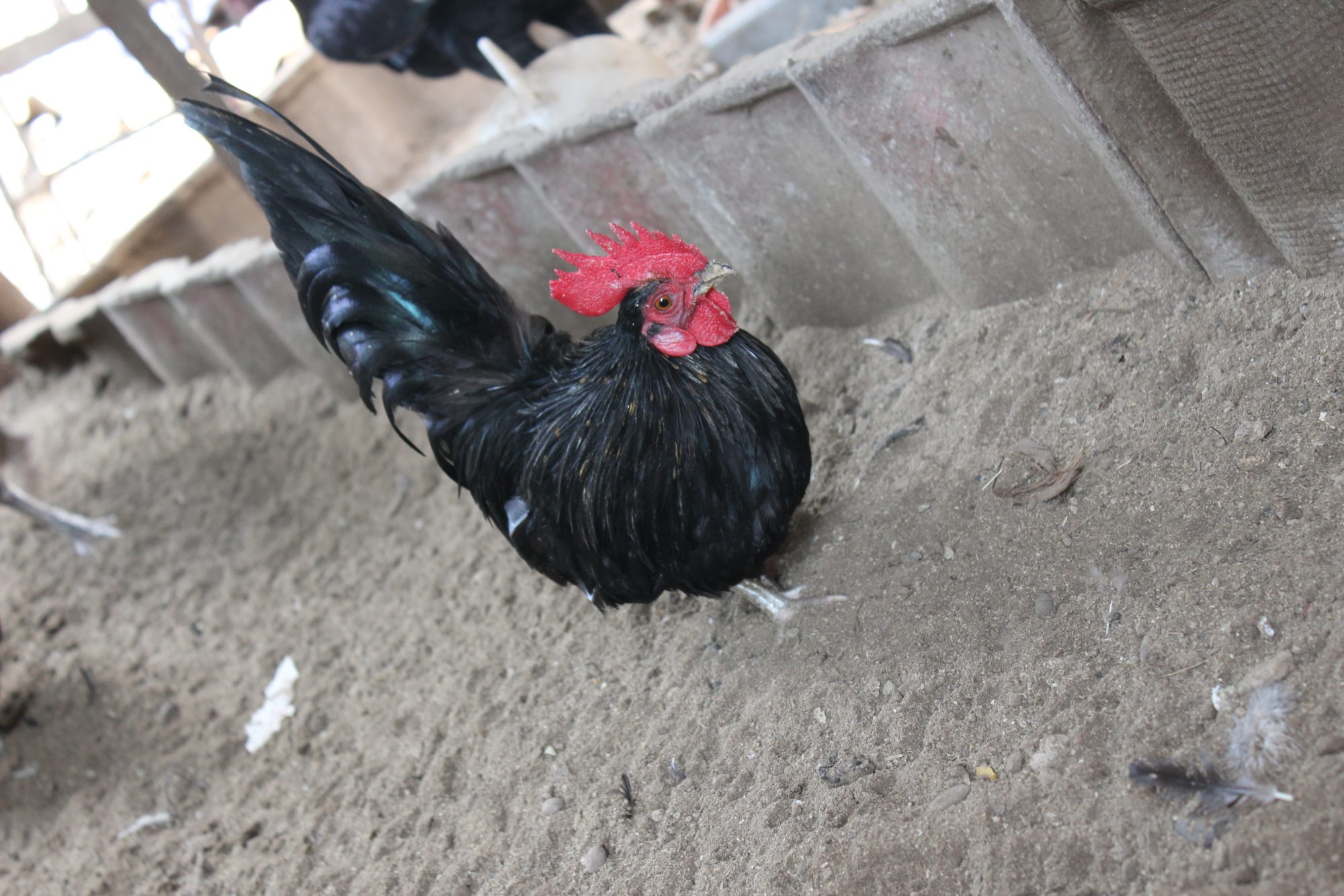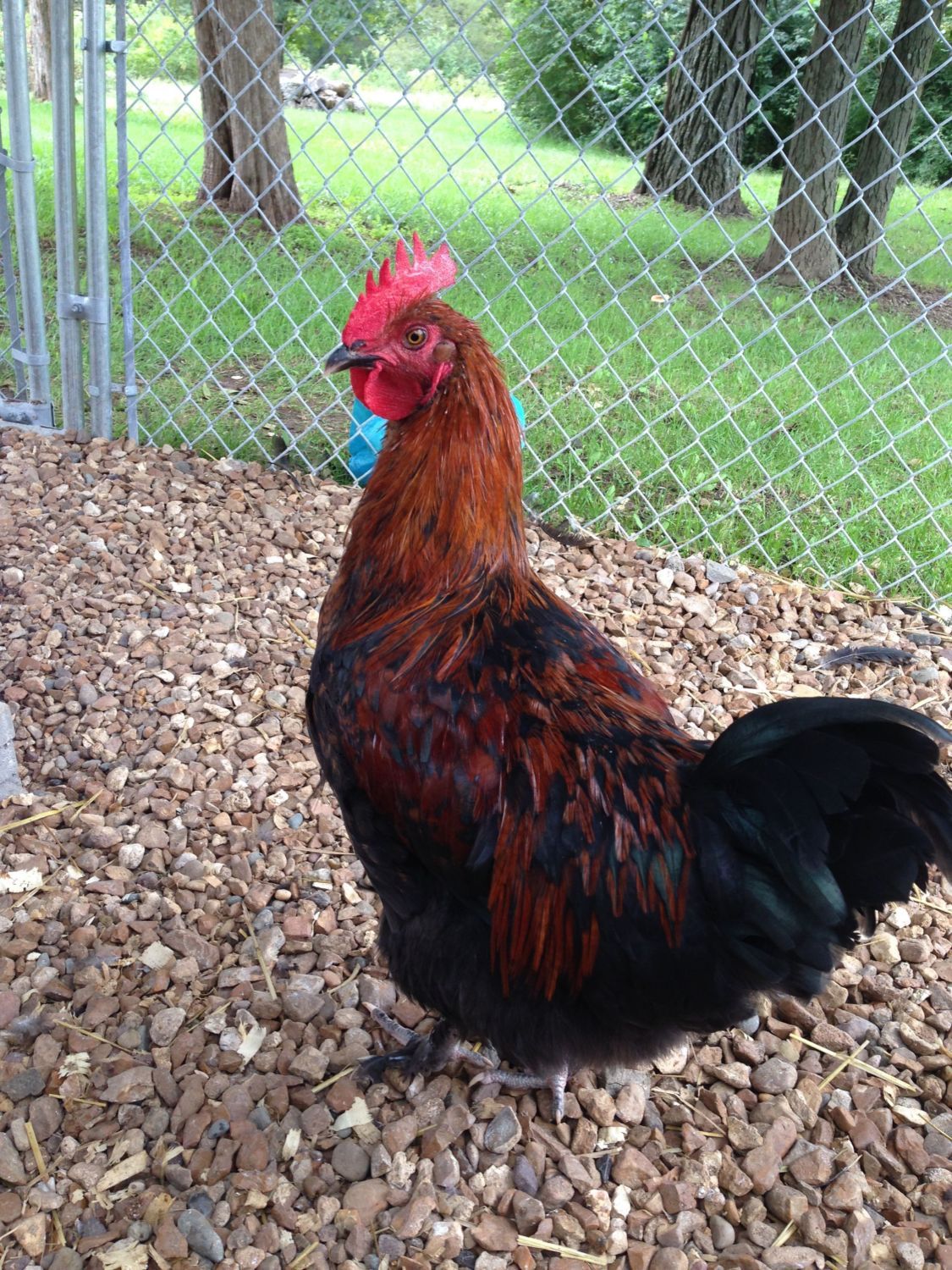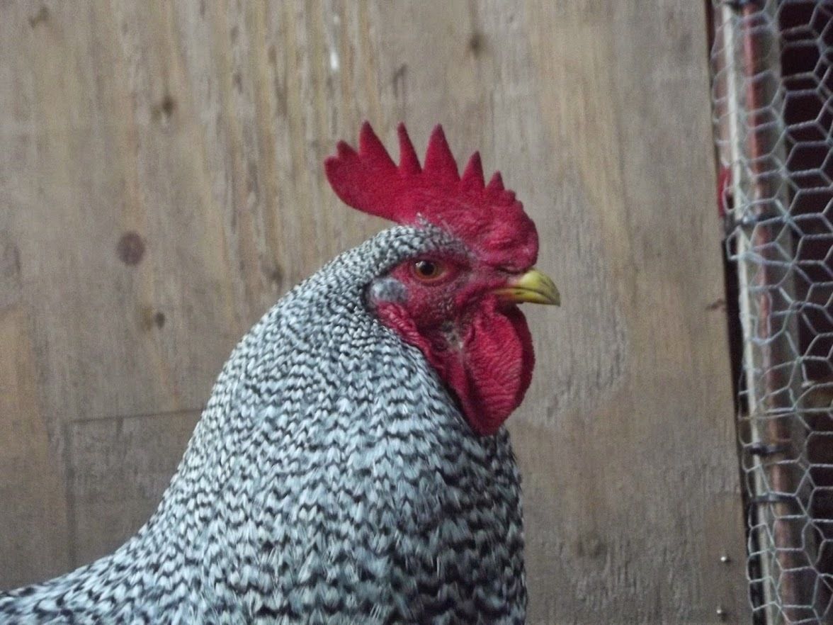 This is Bob, my 20 month old Black Australorp. He is "King of the Castle" around here. A real crooner. Takes good care of the ladies, making certain they are protected and well fed. He won't eat, until they have each had their fill. When he finds food, he calls the girls in, and let's them eat, first. A real gentleman, he is. That's a lot of patience, for a young rooster.