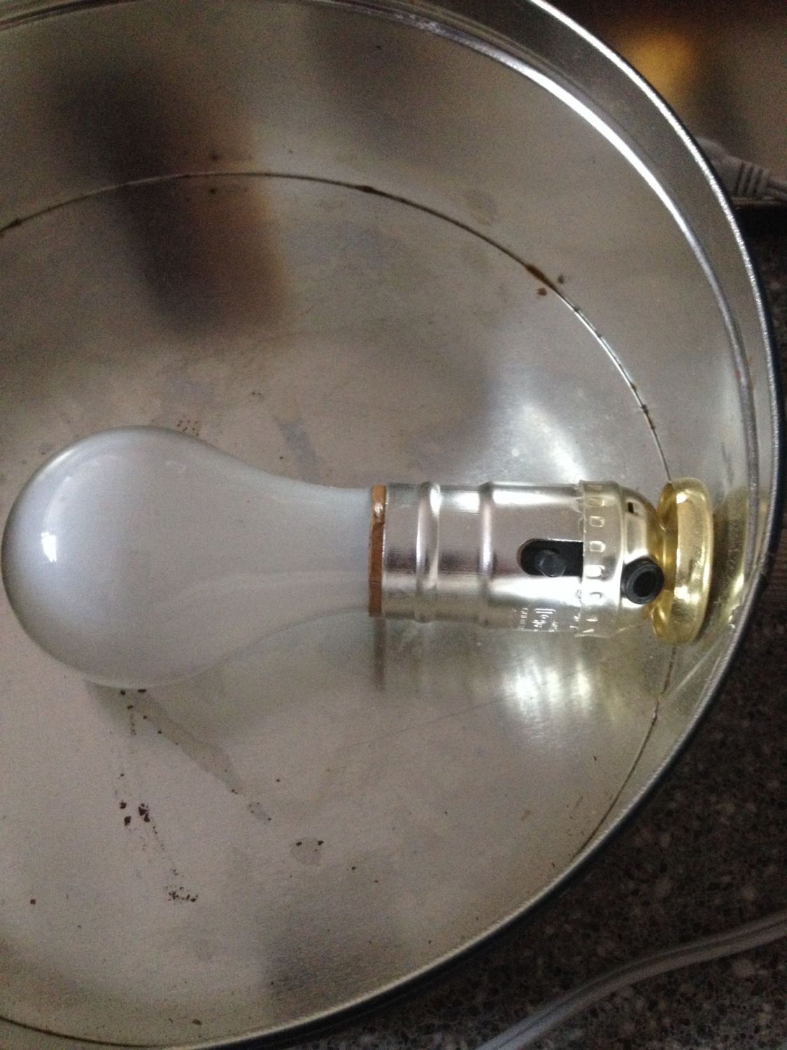 Okay here's the building of a cookie tin heater. Again I use a 40 watt bulb. 25 watt doesn't heat enough. 60 watt gets the metal too hot. (No burning the chickens or the coop! )
